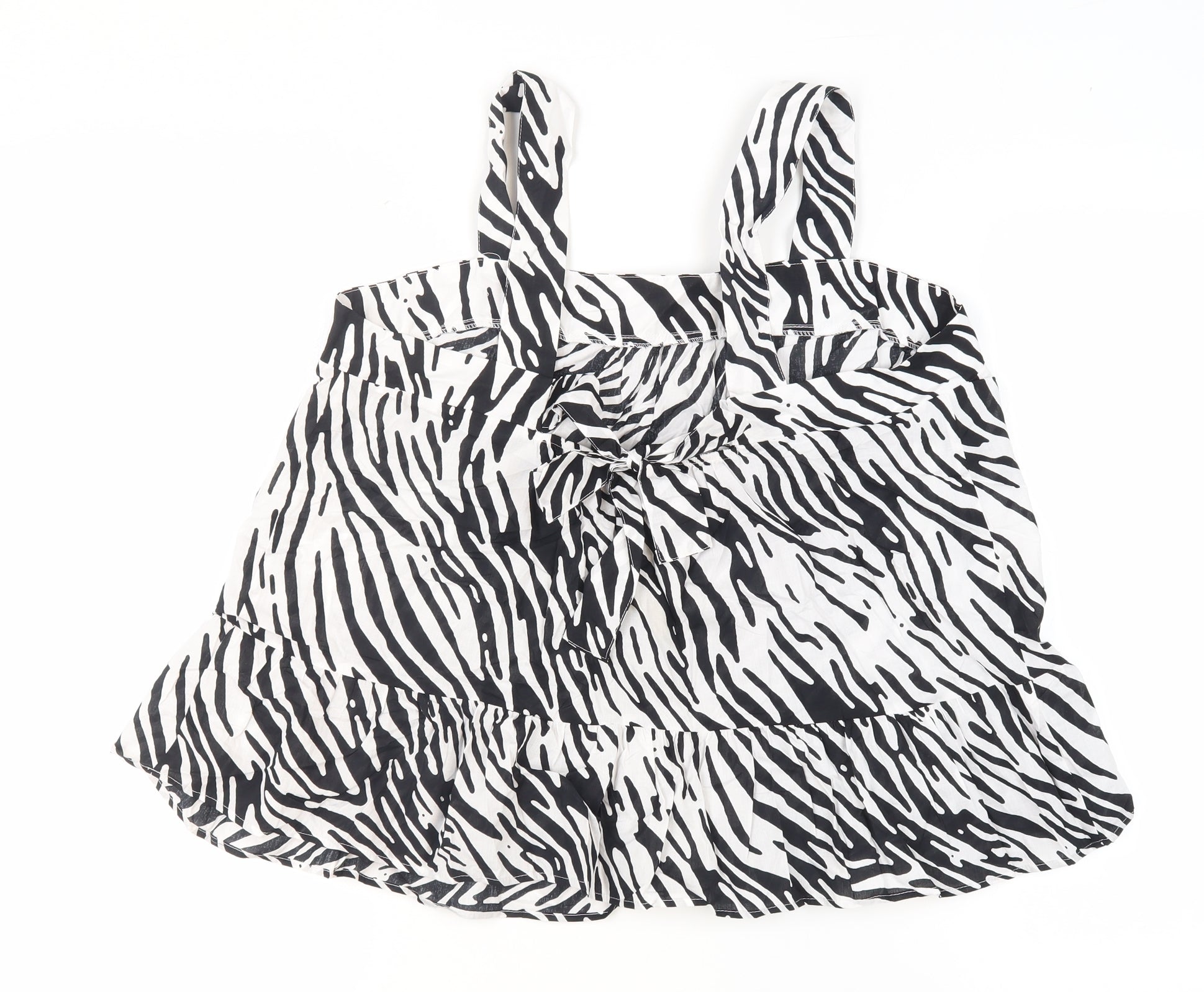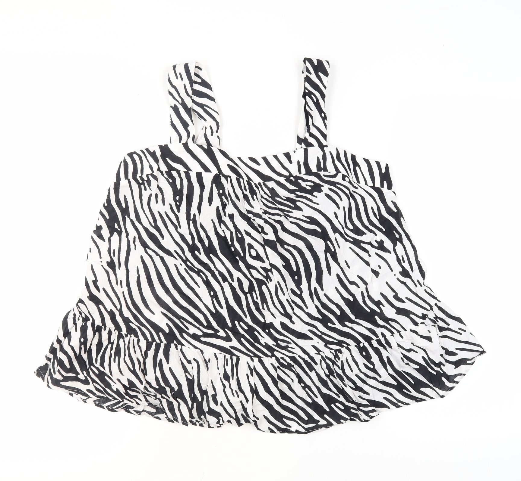 This striking Marks and Spencer Women's Black Animal Print Tank Top is a perfect addition to any casual wardrobe. Featuring a bold zebra print pattern, this camisole-style top is crafted from 100% cotton, ensuring a soft and breathable fit ideal for everyday wear. The wide straps provide comfortable support, making it a versatile choice for various occasions. Whether you're heading out for a weekend brunch or a day in the city, this top adds a touch of wild elegance to your look. With its sleeveless design and regular fit, it's perfect for warmer days or layering with a jacket during cooler months. Complete your ensemble by pairing it with jeans for an effortlessly chic outfit. Don't miss out on the chance to make a fashion statement with this eye-catching piece.