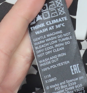 Embrace elegant simplicity with this Marks and Spencer women's top in a striking black and white animal print. Crafted for a relaxed and comfortable fit, this top is sized at 14 and perfectly designed for versatile styling. The short sleeves and machine washable polyester material ensure this top is both practical and stylish, making it suitable for any casual occasion. The classic regular fit and casual sleeve design can be effortlessly paired with jeans or skirts, offering flexibility for various ensemble combinations. Its timeless black and white palette allows for endless accessorizing options, whether you prefer bold statements or subtle elegance. Ideal for all seasons, this top ensures a blend of style and convenience, reflecting the quality and finesse associated with the Marks and Spencer brand. Despite being gently used, it retains an excellent condition with no visible tags, promising both value and quality. Elevate your casual wardrobe basics with this chic piece, making it a must-have addition for modern fashion enthusiasts.
