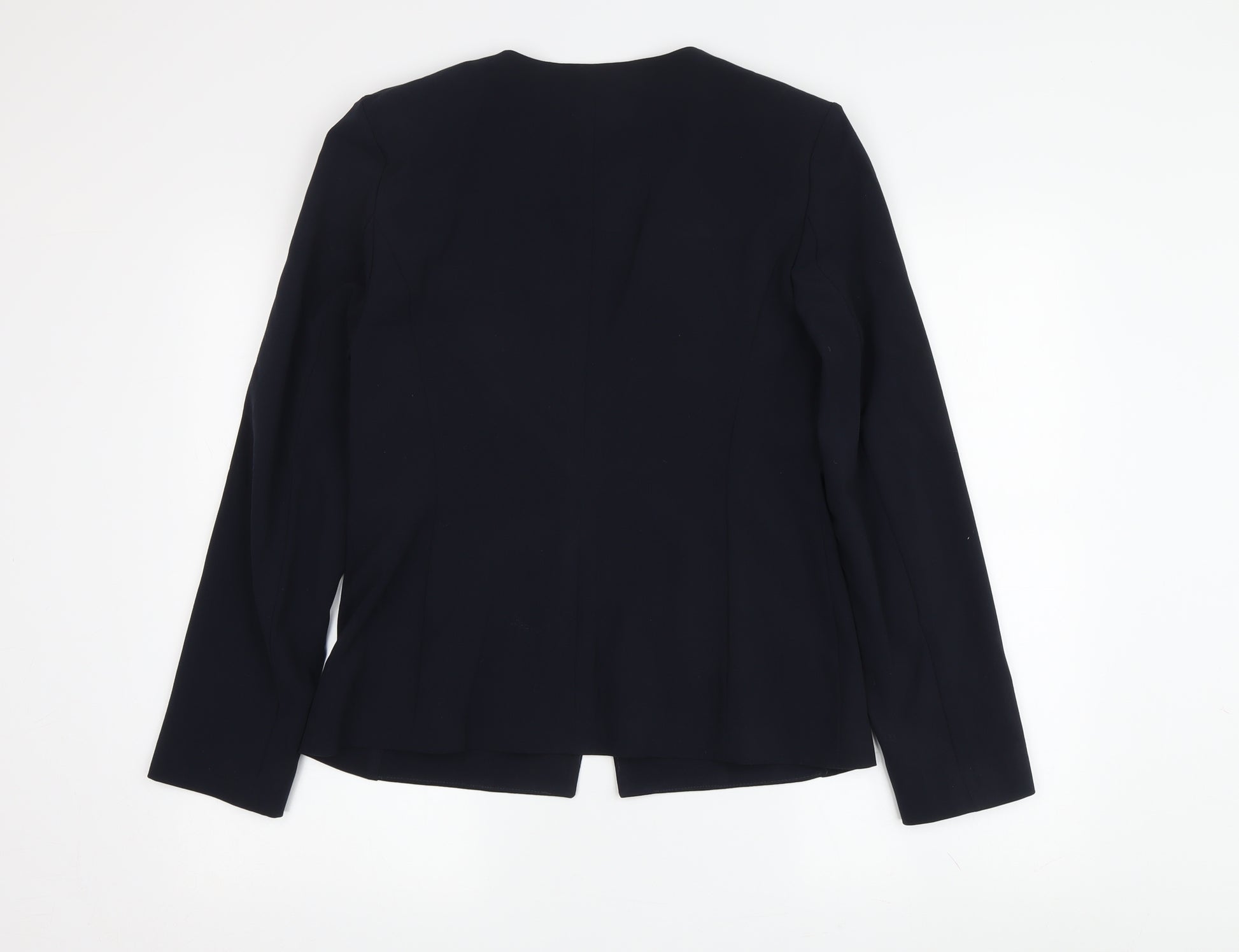 Elevate your wardrobe with this sophisticated Marks and Spencer blazer, perfect for women who appreciate style and comfort. Crafted from a high-quality polyester blend, this black blazer offers a smart, regular fit and is ideal for both business and casual occasions. The versatile design of this blazer makes it perfect for autumn and spring seasons. Its mid-length cut, combined with long sleeves, provides a classic silhouette that complements any outfit seamlessly. Featuring a hook & eye closure for a clean look, this jacket is not only stylish but also practical, ensuring you stay polished wherever you go. The blazer is made from durable twill fabric, known for its elegance and longevity, and lined with smooth polyester for added comfort. With no visible patterns or accents, this minimalist piece effortlessly enhances your overall ensemble. Pair it with your favourite trousers or a skirt for a professional look or dress it down with jeans for a casual outing. This Marks and Spencer blazer is machine washable, simplifying care and maintenance. In excellent condition with no signs of damage, it promises to be a valuable addition to your collection. Purchase now to experience the classic charm and trusted quality of Marks and Spencer.