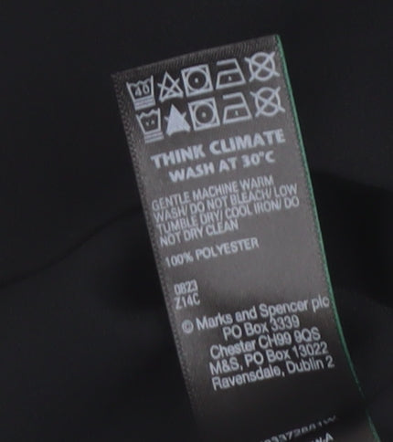 Discover elegance and simplicity combined in this beautiful Marks and Spencer black blouse. With its versatile style and classic design, this top is perfect for any occasion. Made for the modern woman, this blouse offers a blend of comfort and sophistication with its long sleeves and round neckline. The 100% polyester fabric ensures durability and easy maintenance, making it a wardrobe staple. Ideal for casual outings or dressed up with accessories for evening events, this blouse is your go-to piece for effortless fashion. Available in a size 22 with a regular fit, it’s designed to flatter the figure while providing a comfortable wear. Embrace the timeless appeal of this blouse, suitable for any season. The solid pattern and button closure add a touch of chic minimalism. Make this versatile piece a part of your wardrobe today and enjoy a blend of style and practicality that only Marks and Spencer can offer.