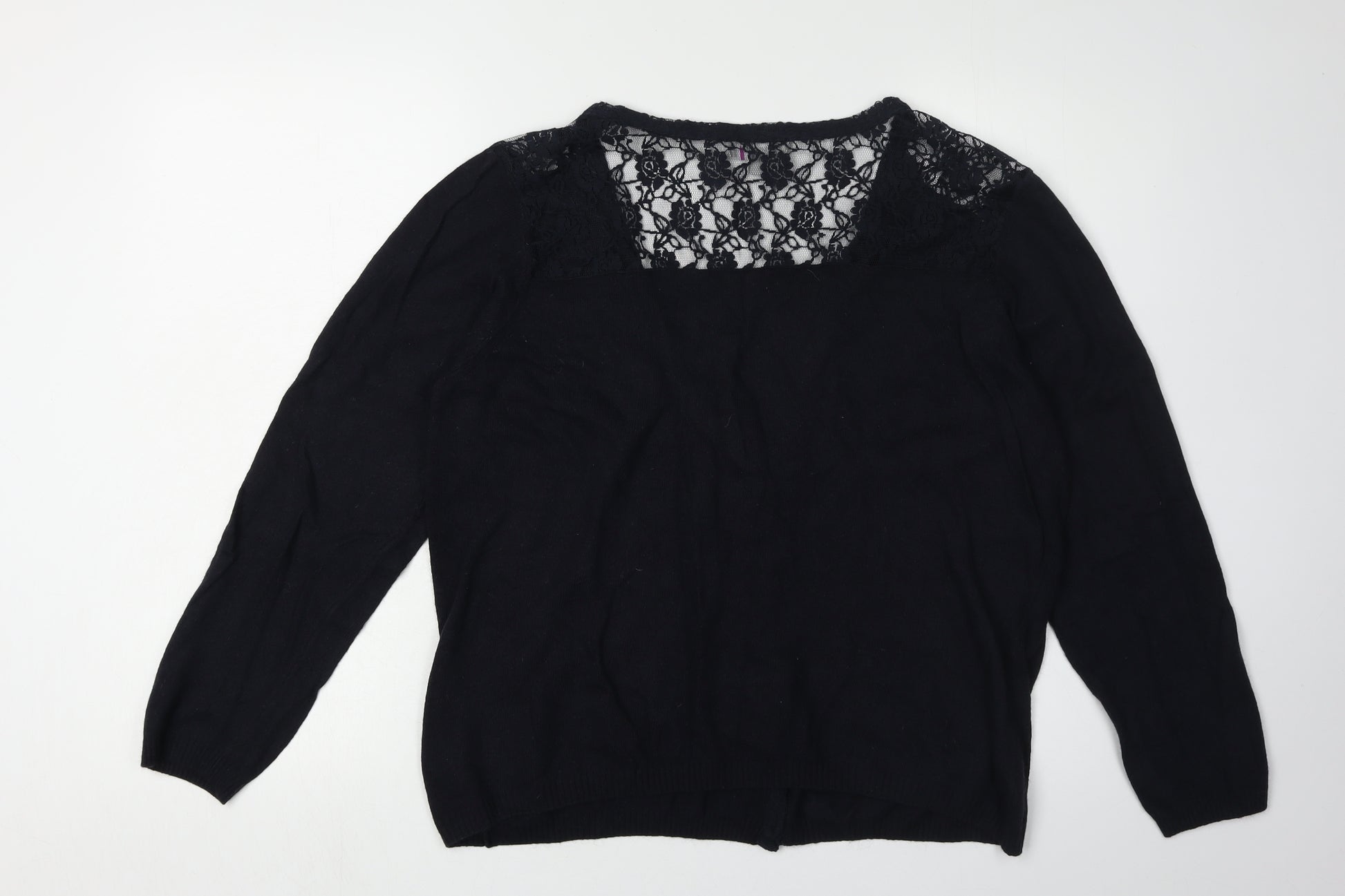 Refresh your wardrobe with this beautiful black cardigan from the renowned brand Marks and Spencer. Designed for women, this cardigan combines classic elements with contemporary flair. Made from a blend of cotton, nylon, and angora, it ensures warmth and comfort while maintaining a lightweight feel. The intricate lace accents add a delicate touch, making it suitable for both casual outings and semi-formal gatherings. Featuring a button closure, this cardigan is easy to wear and style. The regular fit and long sleeves provide a flattering silhouette for a wide range of body types. Perfect for spring and autumn, this piece is machine washable, ensuring convenience and ease of care. Whether paired with jeans for a laid-back look or layered over a dress for a more polished ensemble, this cardigan is versatile and timeless. Embrace effortless style with this elegant addition to your collection.