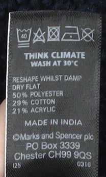 Step out in style with this elegant Marks and Spencer Women's Cardigan, presented in a classic black hue that effortlessly complements any wardrobe. Crafted for comfort and durability, this cardigan features a cable-knit style that adds texture and sophistication to your ensemble. The design is enhanced by the addition of stylish buttons that accent the front, providing both functionality and flair. Perfect for versatile seasonal wear, this cardigan is fabricated from a soft blend of polyester, cotton, and acrylic, ensuring it remains comfortable and resilient through everyday wear. Its long sleeves provide the warmth needed for cooler days while maintaining breathability. Designed for the modern woman, this cardigan offers a regular fit, making it an essential addition to any fashion-forward collection. Whether you're heading to a casual gathering or a smart-casual event, this cardigan serves as a chic layering piece that's sure to impress. Machine washable for easy care, it is the perfect intersection of convenience and style. Invest in this excellent condition piece today to enrich your wardrobe with a timeless classic.