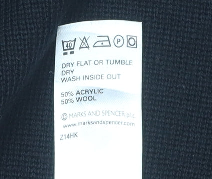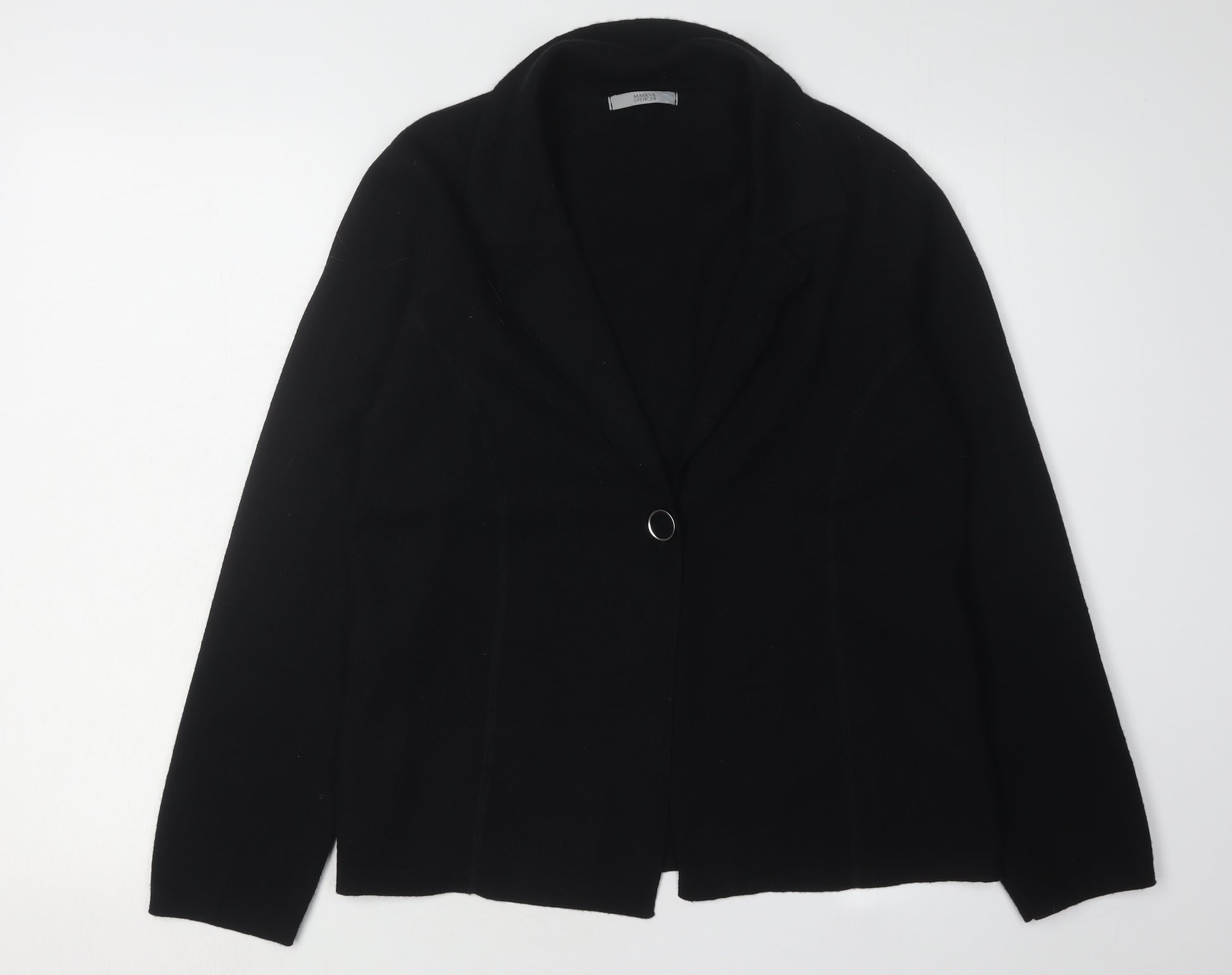 This elegant black cardigan by Marks and Spencer is the perfect blend of style and comfort. Crafted from a high-quality acrylic and wool blend, this knitted cardigan provides a soft and cosy feel, making it ideal for all seasons. The collared neckline adds a touch of sophistication, while the single button accent creates a stylish focal point. Designed for women, this long-sleeved cardigan fits a UK size 10 and offers a regular fit that lays comfortably on the body. With a focus on practicality, this cardigan is machine washable, ensuring easy garment care. Whether you’re dressing for a casual day out or adding a layer to your workwear ensemble, this versatile piece works effortlessly with any outfit. Get ready to turn heads in this classy cardigan, perfect for various occasions, from casual meet-ups to light office settings.