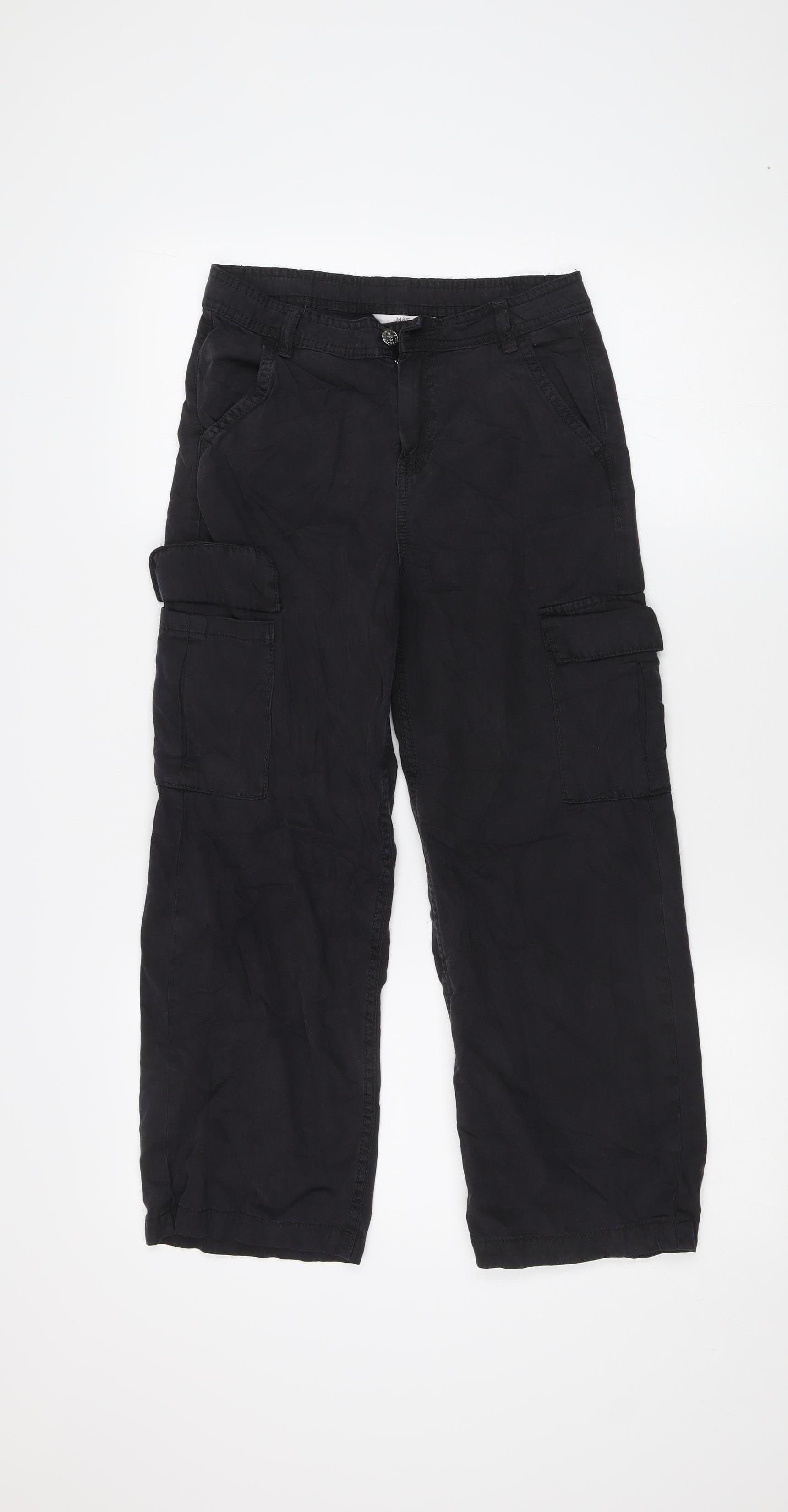 Elevate your casual wardrobe with these versatile Marks and Spencer Women's Black Cargo Trousers. Designed with a relaxed fit and wide-leg style, these cargo trousers offer a perfect blend of comfort and fashion. The deep black colour adds a touch of elegance, making them suitable for various occasions from casual outings to relaxed work environments. Crafted from quality material, the trousers ensure durability and long-lasting wear. Featuring practical pockets and a secure button and zip closure, they combine functionality with style. The flat front design and no-pattern finish keep the look sleek and modern. Ideal for everyday wear, these cargo trousers are an essential addition to any wardrobe. Whether you're running errands or spending a leisurely day out, these trousers give you the comfort and ease you need. Embrace a laid-back, stylish look with these must-have cargo trousers from Marks and Spencer.