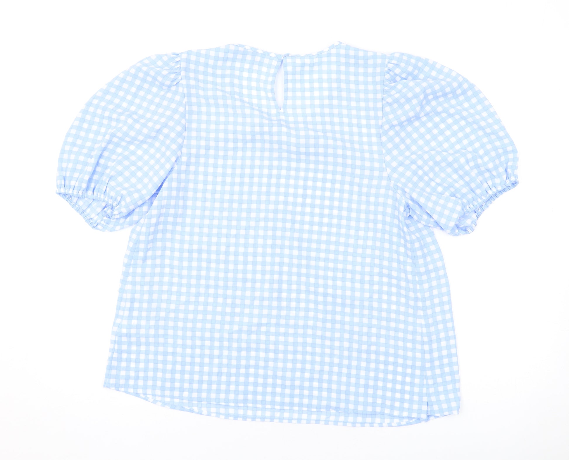 Womens Black Check Polyester Basic Blouse Size 14 Round Neck
