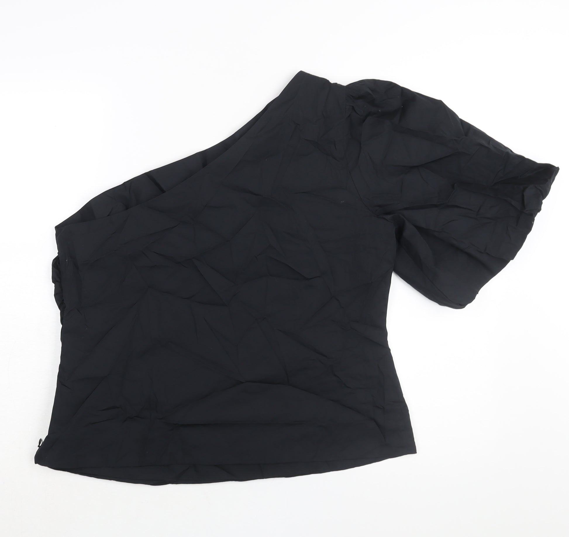 Womens Black Cotton Basic Blouse Size 16 One Shoulder - Rouched
