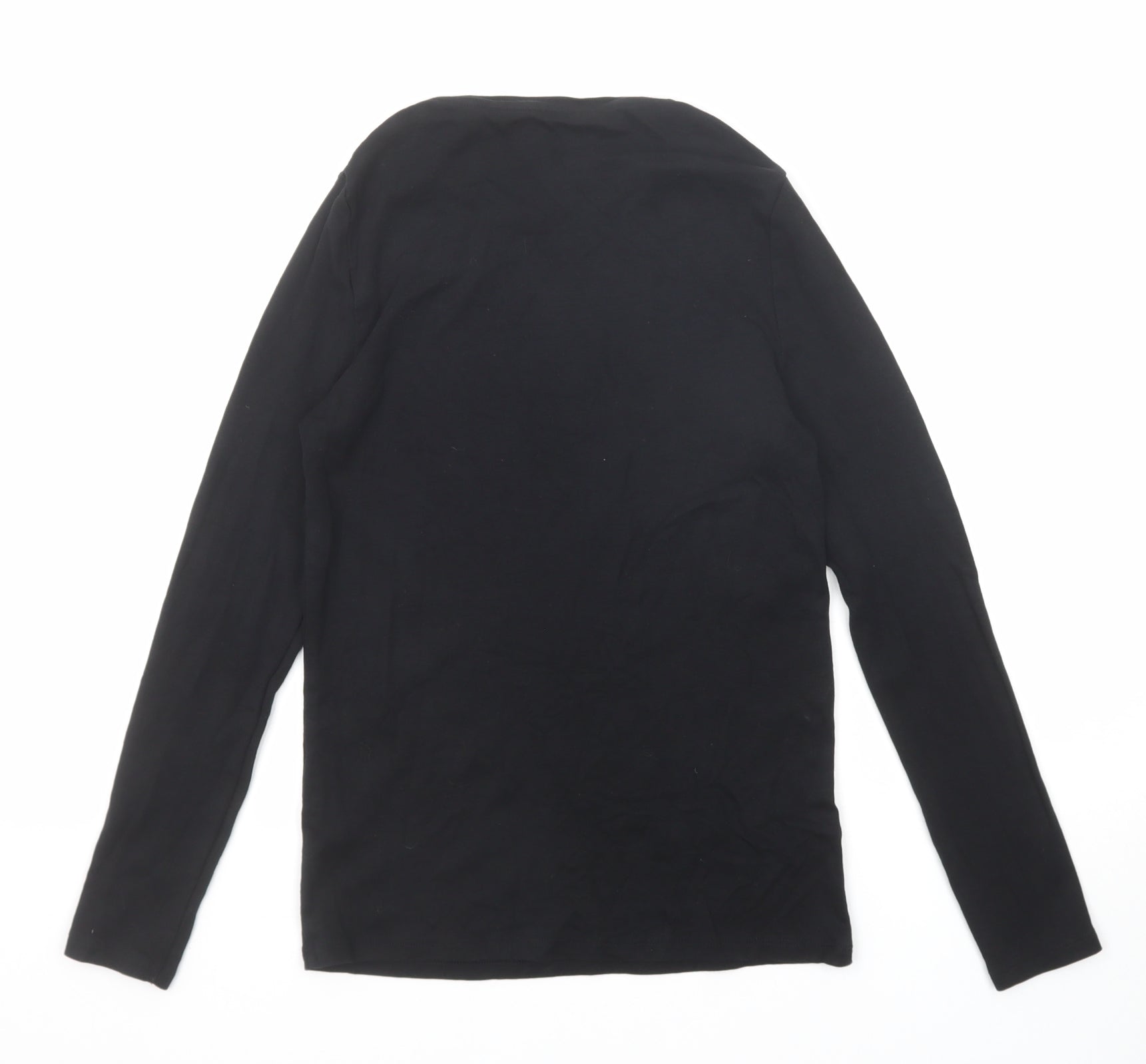 Womens Black Cotton Basic T-Shirt Size 12 Round Neck
