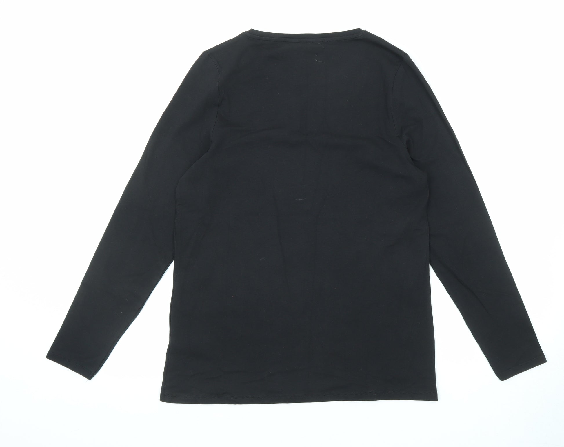 Womens Black Cotton Basic T-Shirt Size 16 Round Neck