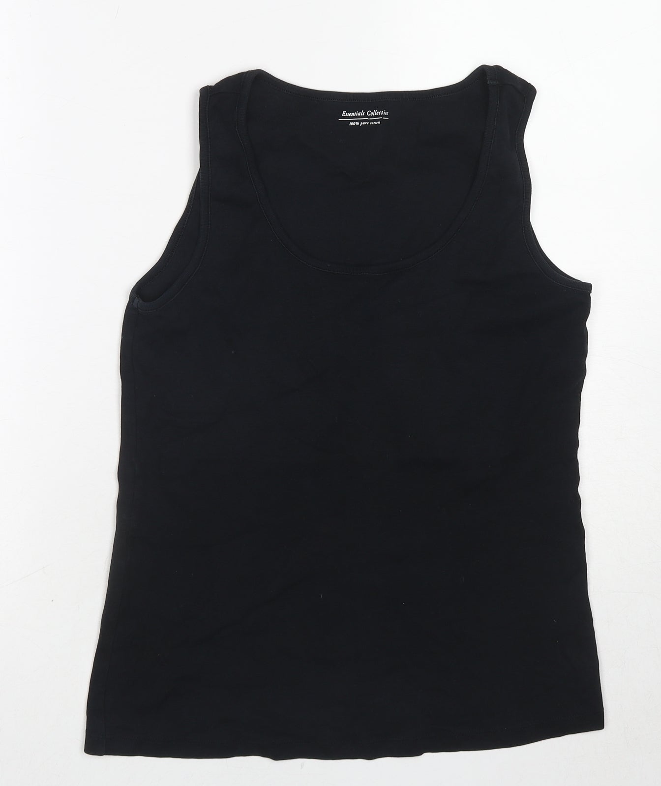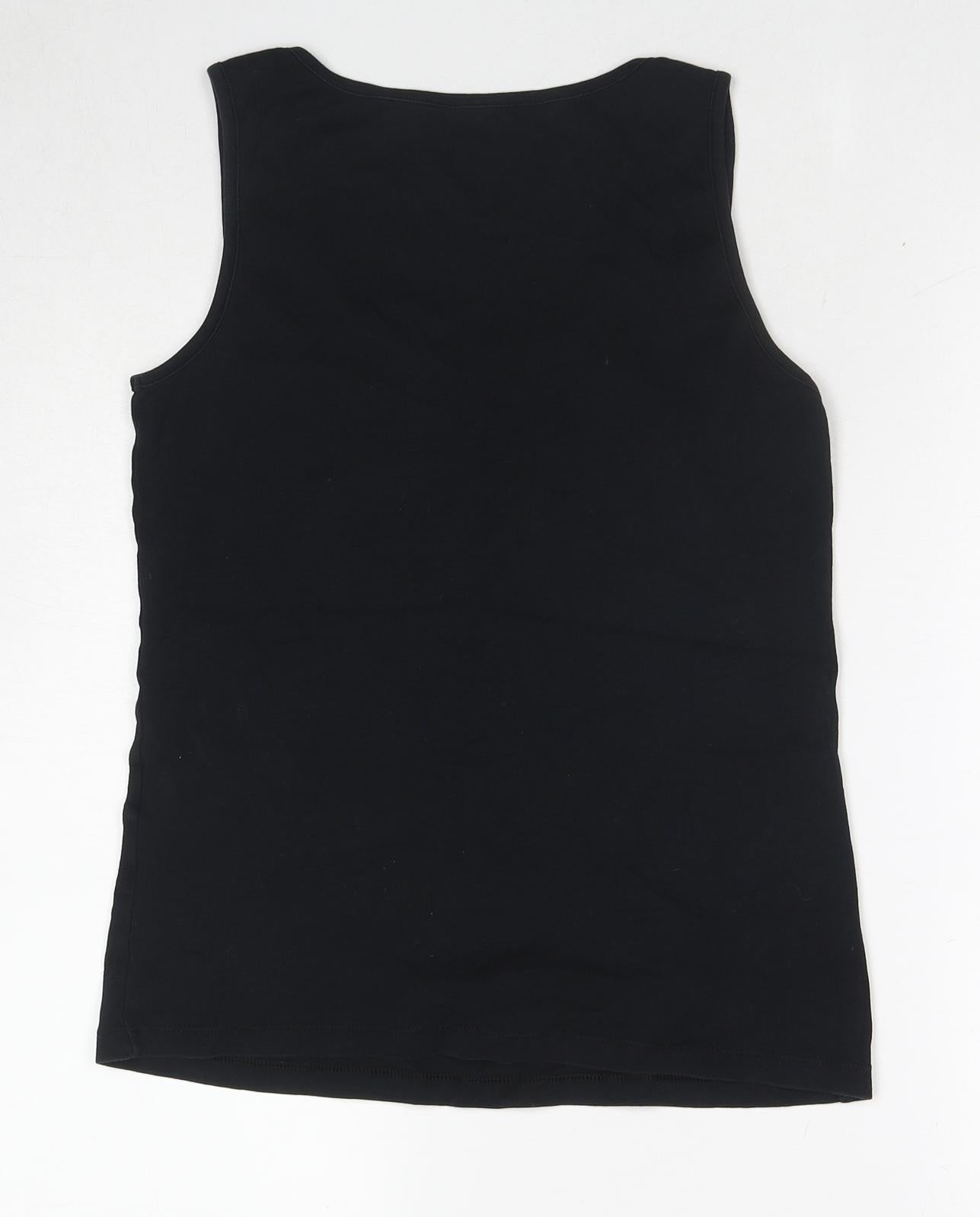 Womens Black Cotton Basic Tank Size 16 Scoop Neck