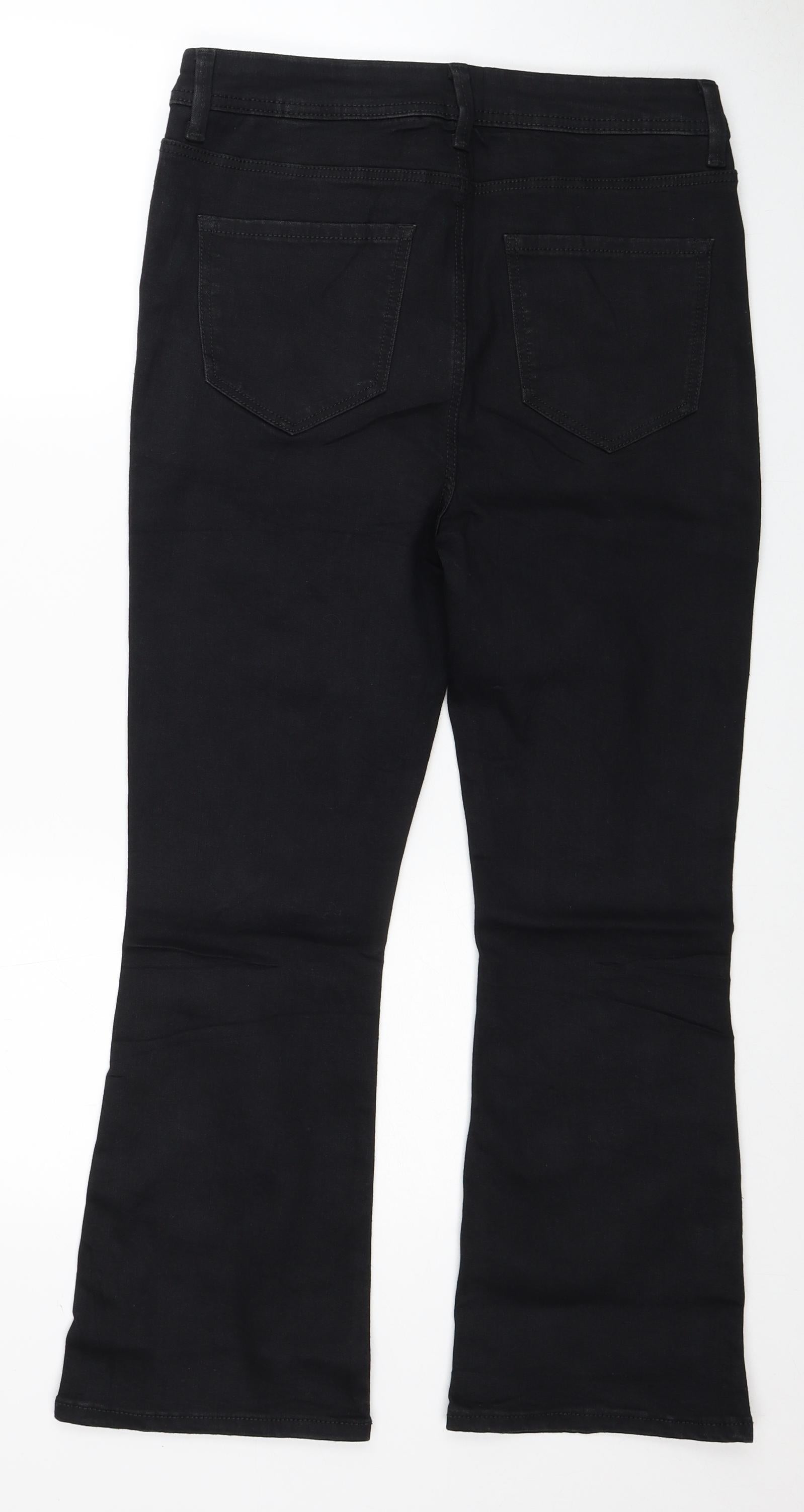 Womens Black Cotton Cropped Jeans Size 12 Regular Zip