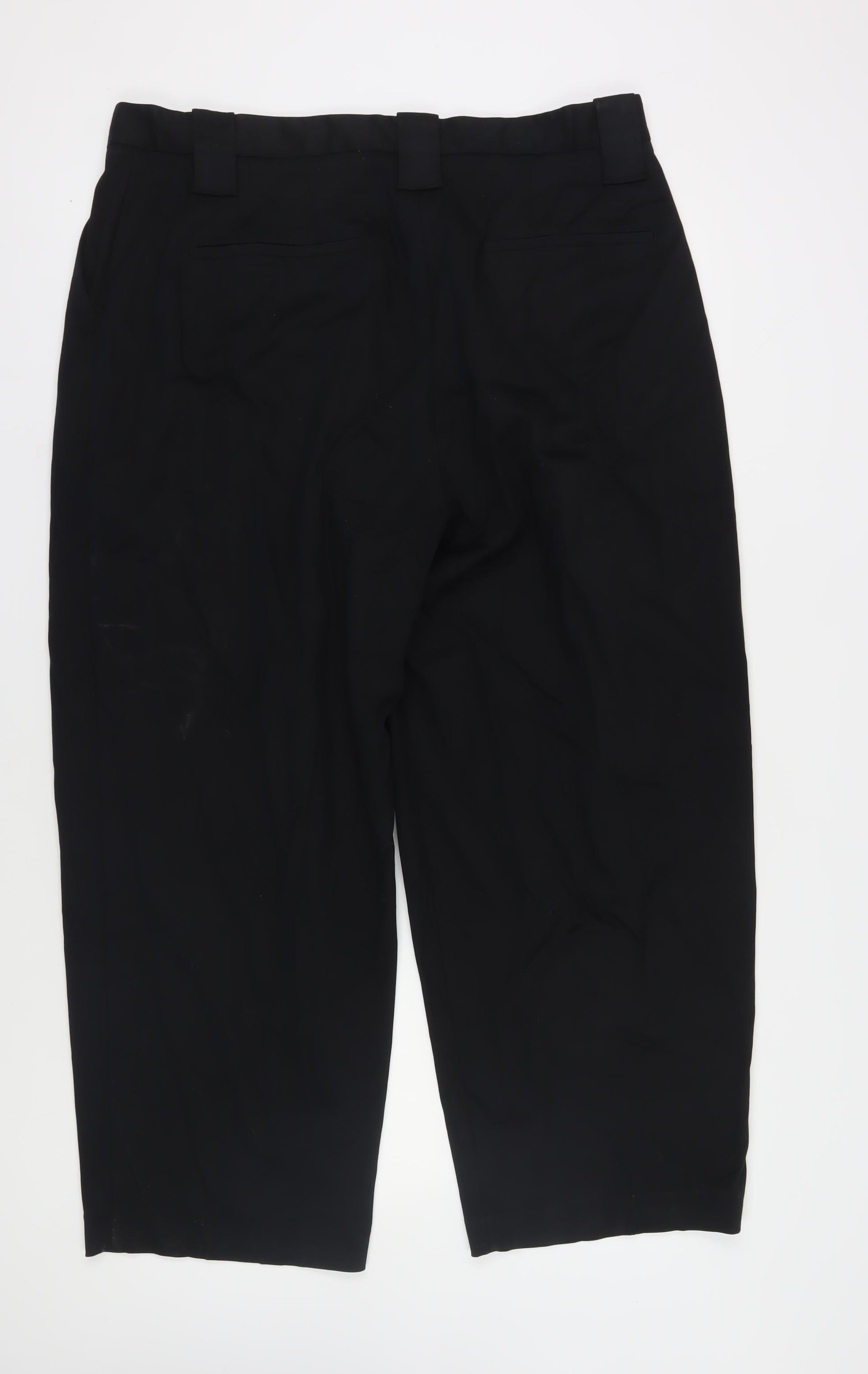 Discover the perfect blend of comfort and style with these Marks and Spencer Women's Black Cropped Trousers in a roomy size 20. Tailored to perfection, these trousers are designed for the modern woman seeking a classy yet laid-back look. With a mid-rise and straight leg style, they offer an effortless fit that complements various body shapes. Crafted from a premium blend of lyocell, cotton, and elastane, these trousers ensure maximum comfort and flexibility, making them ideal for all-day wear. The elegant black colour makes them suitable for casual occasions, whether you're heading out for a relaxed brunch or running errands. The classic flat front design, accented with a discrete button, adds a touch of sophistication, while the elastic waist and practical pockets enhance functionality. Easy to maintain, these trousers are machine washable, making them a practical addition to your wardrobe. Despite slight signs of wear, they maintain excellent condition, presenting a superb opportunity to elevate your fashion game at an affordable price. Embrace timeless fashion with these versatile trousers, crafted to last through numerous autumn and winter seasons.