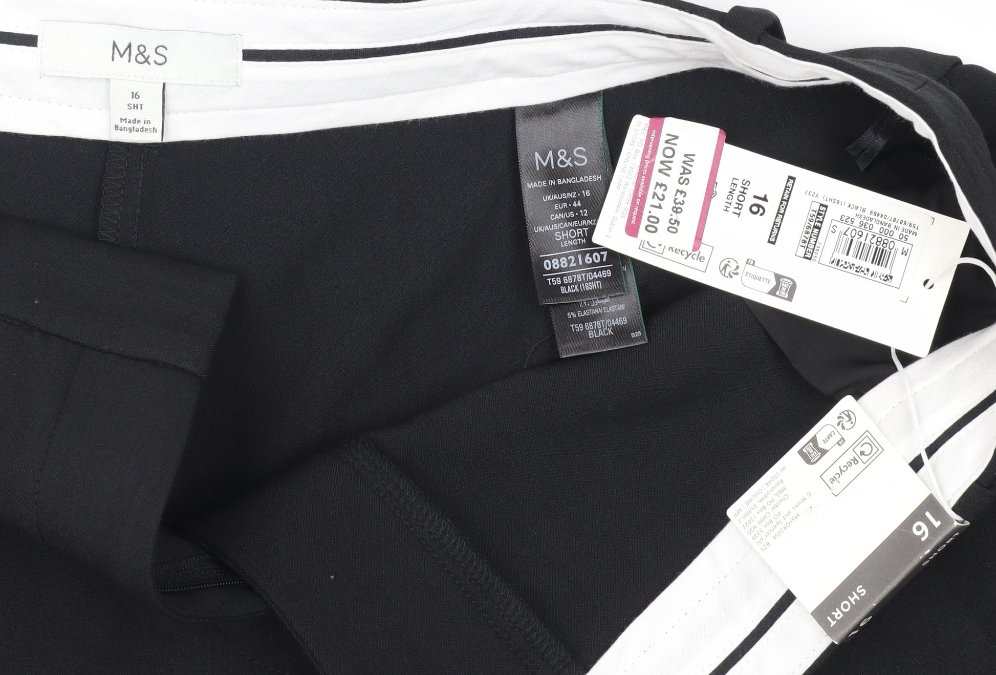 Step into style and comfort with these elegant Marks and Spencer Women's Black Cropped Trousers in a versatile size 16. Perfectly designed for contemporary tastes, these trousers feature a sleek and polished straight leg style that effortlessly complements both business and casual ensembles. Crafted from a resilient blend of polyester and elastane, and detailed with a mid-rise flat front, these trousers offer breathable comfort and flexibility, making them ideal for all-day wear. Their easy-care nature, coupled with a convenient button and zip closure, ensures you maintain impeccable style without the fuss. These trousers offer practical pockets for everyday essentials and are perfectly suited for transitions from the boardroom to a casual luncheon. Accentuated by subtle button accents, they deliver a modern aesthetic in a classic design. Whether you’re building a professional wardrobe or ensuring your casual attire is up to par, these Mark and Spencer trousers are the perfect addition. Experience the luxury and reliability of a brand known for quality craftsmanship without compromising on fashion-forward styling. Don’t miss the chance to elevate your collection with these polished cropped trousers.