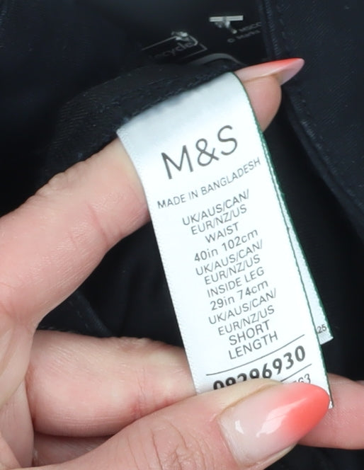 Step into sophistication with these Marks and Spencer Women's Black Dress Pants, perfect for the modern professional seeking a perfect blend of style and comfort. Crafted from a luxurious cotton and elastane blend, these trousers offer a soft touch and comfortable fit, ensuring you feel at ease throughout your day. The sleek black colour lends an air of elegance, making them ideal for business meetings, formal events, or simply elevating your workwear wardrobe. Featuring an elastic waist and practical pockets, these trousers not only look great but are functional too. The straightforward zip and button closure make dressing easy and efficient, while the straight leg style offers a classic silhouette that works well with any outfit. Designed for versatility, these pants are suitable for both autumn and spring wear, providing a perfect foundation whether paired with a light blouse or a warm jacket. With their flat front and regular fit, they deliver a sleek, tidy appearance that is always in fashion, free from any distracting patterns. Brand new and complete with tags, these trousers are machine washable for hassle-free garment care. Upgrade your wardrobe with a reliable piece that promises to enhance any ensemble, ensuring each outing or event is met with confidence and style.