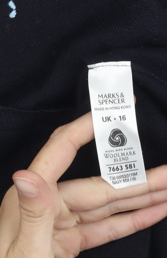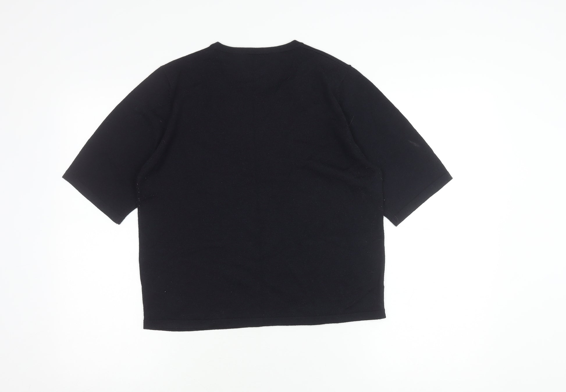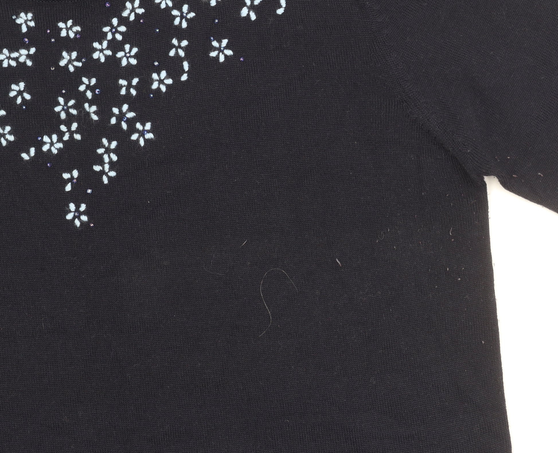 Elevate your wardrobe with this elegant black top from Marks and Spencer. Crafted for women, this stylish piece features a beautiful floral embroidery accent that adds a touch of sophistication to any ensemble. The 3/4 sleeve length provides a versatile look that is perfect for transitional seasons. Made from a comfortable blend of acrylic and wool, this top ensures a soft feel while maintaining durability. The round neckline complements a variety of accessories, making it easy to personalize your look. With a size 16 fit, it's designed to flatter and provide a comfortable wear for different occasions. Although it comes in excellent condition with light wear, it lacks the original tags, offering it at a competitive price. Ideal for casual outings or a relaxed day at work, this black floral top is sure to become a staple in your collection. Don't miss out on this versatile piece that effortlessly combines comfort with style.