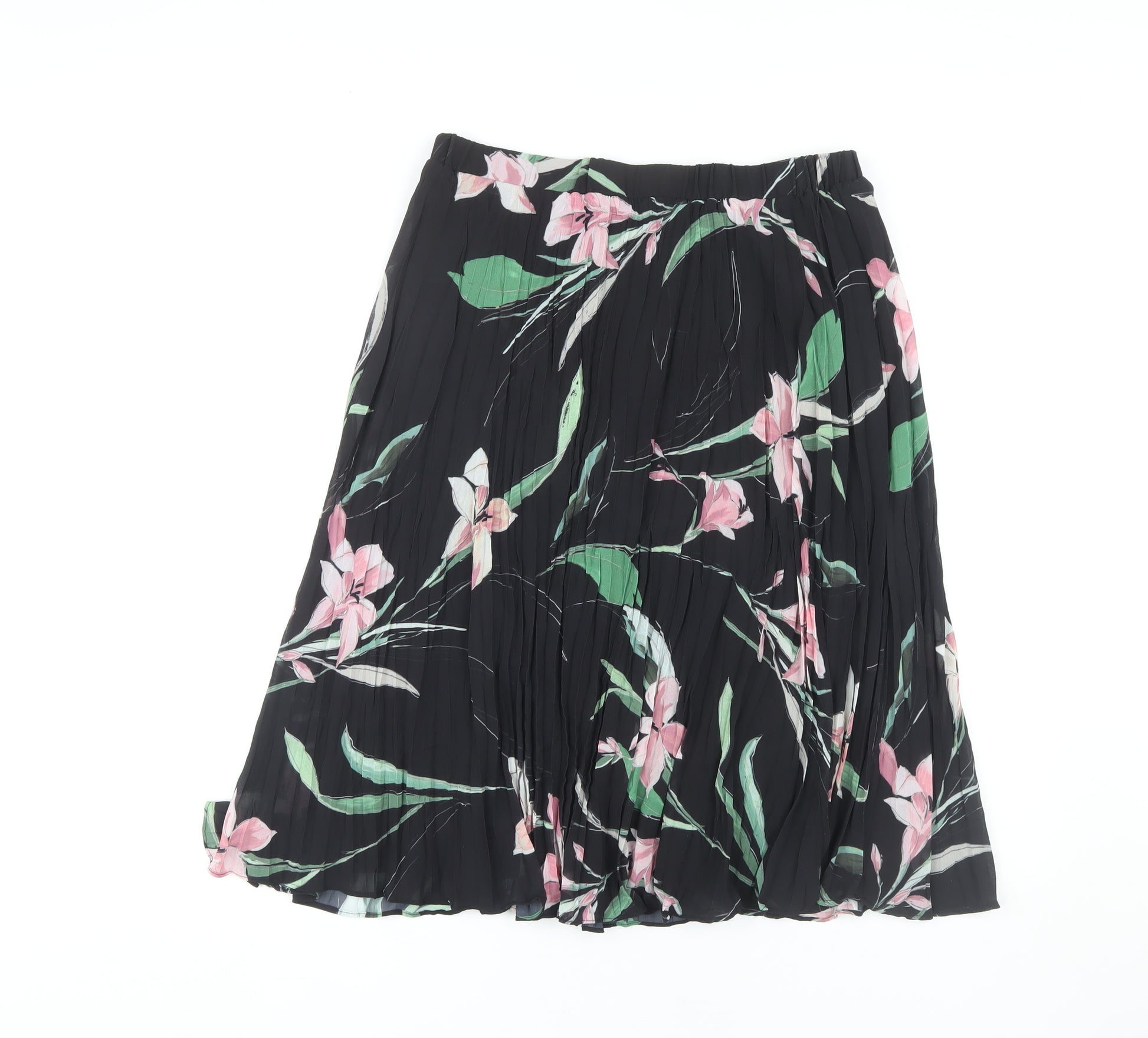Embrace timeless elegance with this Marks and Spencer floral pleated skirt. Crafted from 100% polyester, it offers both durability and comfort, making it perfect for a variety of occasions. The multicoloured floral pattern on a black background adds a touch of chic sophistication, ideal for transitioning from work to an evening out. The regular size 12 fit ensures a flattering silhouette, while its pleated style brings movement and flair to your outfit. Perfectly suited for machine washing, this skirt is not only stylish but also practical. Wear it with a fitted blouse for a polished look or a casual tee for a relaxed vibe. Its versatility makes it a wardrobe staple you'll reach for time and again.