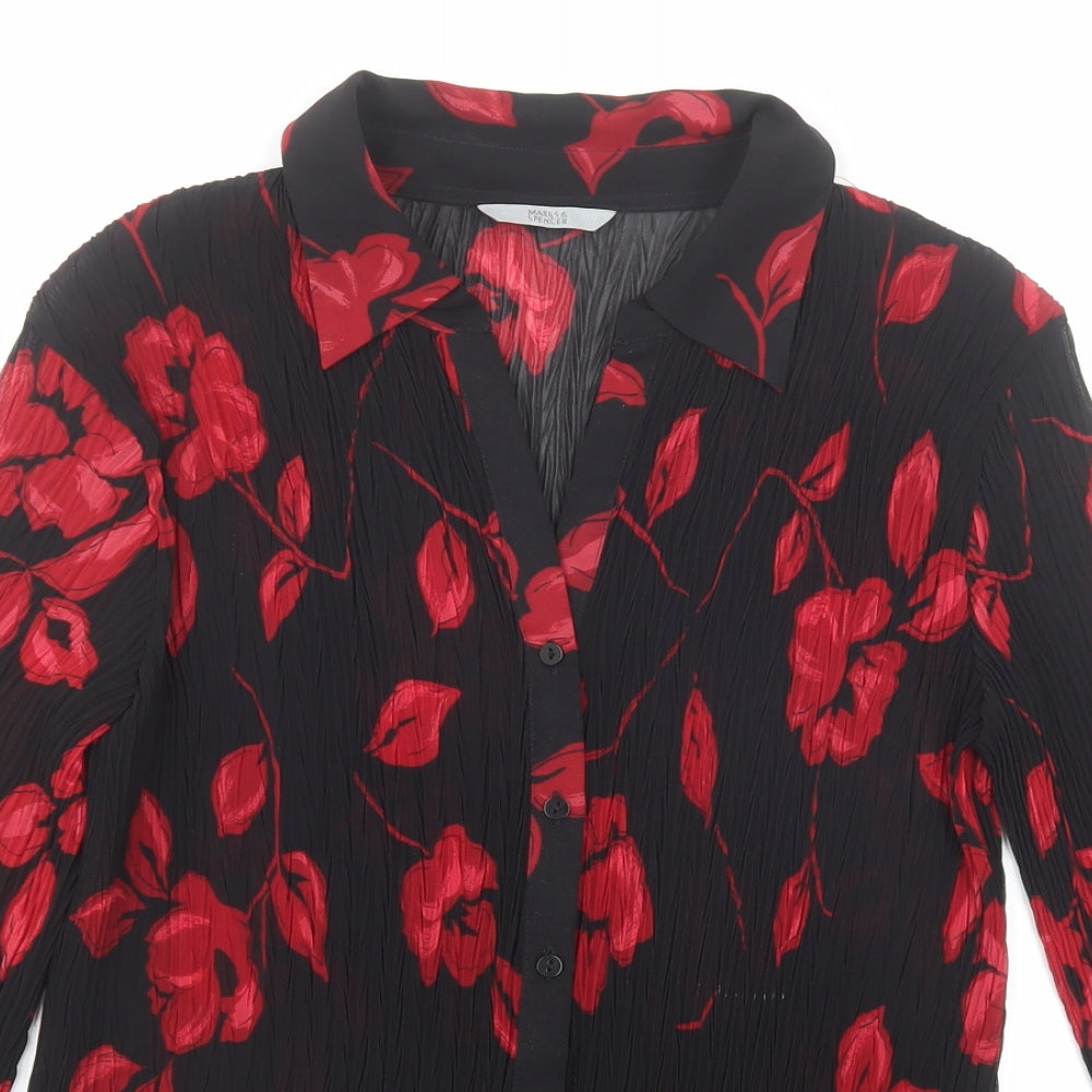 Womens Black Floral Polyester Basic Button-Up Size 18 Collared