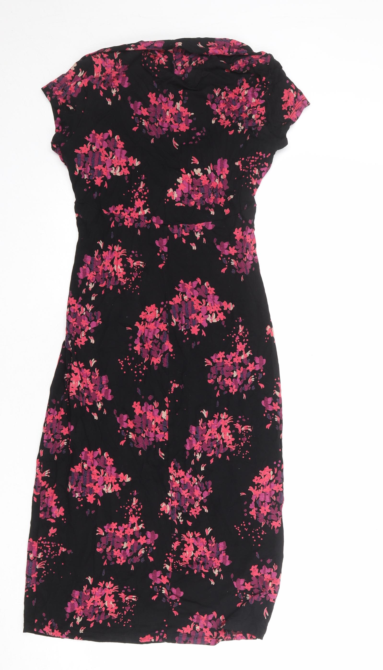 Womens Black Floral Viscose Bodycon Size 12 V-Neck Pullover