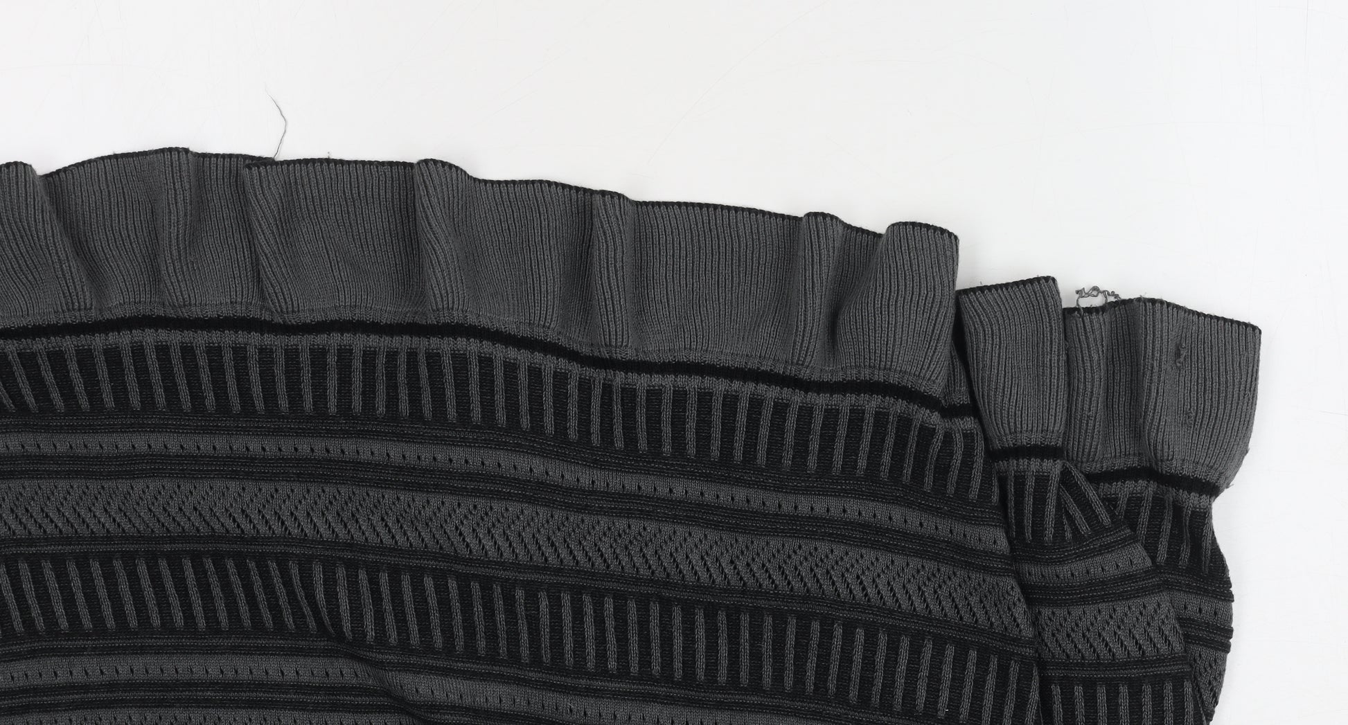 Elevate your wardrobe with this chic Women's Black Knit Skirt from Marks and Spencer. Designed for comfort and style, this skirt is perfect for various occasions, from casual outings to more formal events. Made from a blend of Acrylic and Polyester, the knit fabric features a unique geometric pattern that adds a contemporary vibe to any outfit. The skirt is easy to care for, being machine washable, making it a practical addition to your clothing collection.Crafted to flatter, the skirt comes in a size 18, suitable for a UK Women's department. The elegant black colour complements a wide range of tops and accessories, allowing for versatile styling options. Equipped with a convenient zip closure, it ensures easy wear and a snug fit.Though not brand new, this skirt is in excellent condition, showing no visible signs of wear and maintaining a polished appearance. Its timeless design and quality materials make it a worthwhile investment for anyone looking to enhance their ensemble with a touch of elegance and sophistication. Ideal for those who appreciate both fashion and functionality, this Marks and Spencer skirt is a must-have staple in your closet.