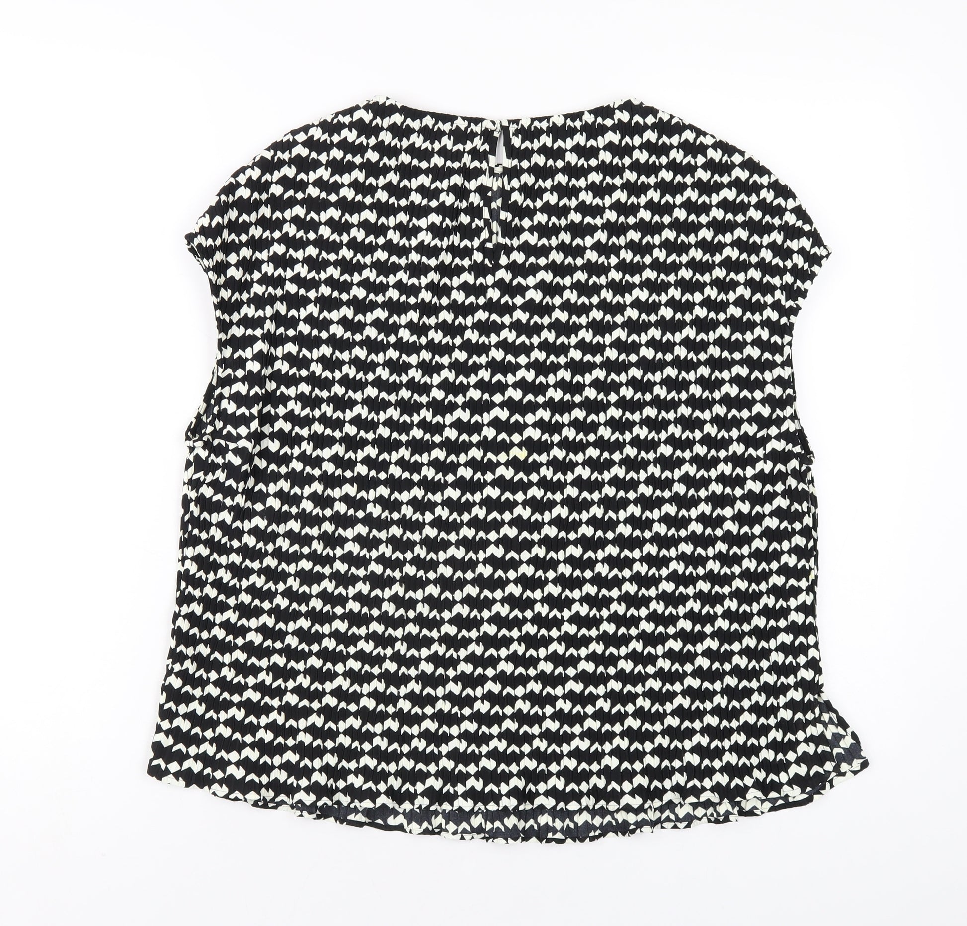 Womens Black Geometric Polyester Basic T-Shirt Size 12 Round Neck