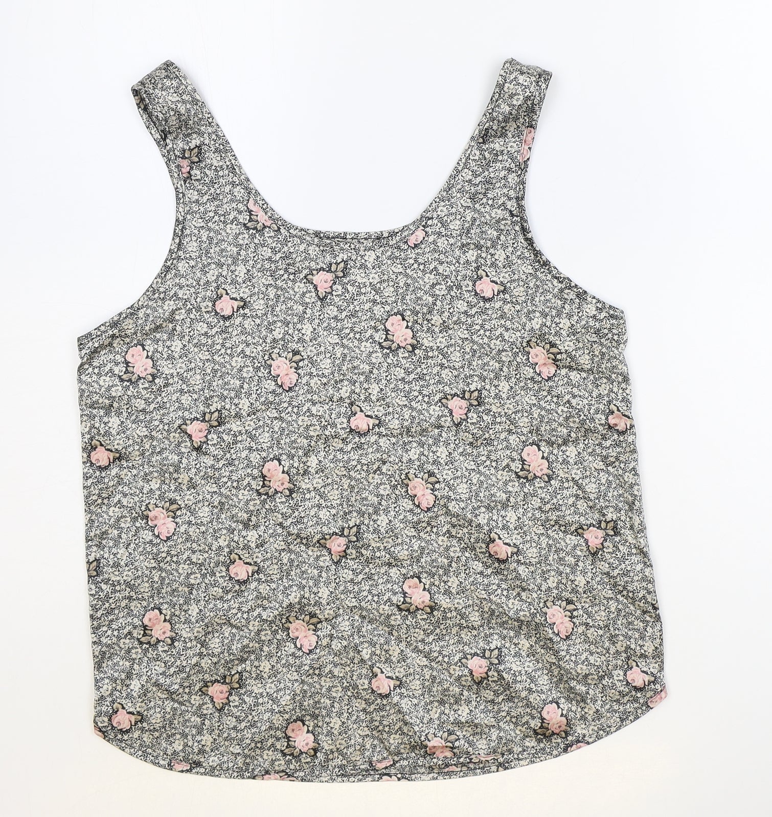 Womens Black Geometric Polyester Basic Tank Size 10 Round Neck