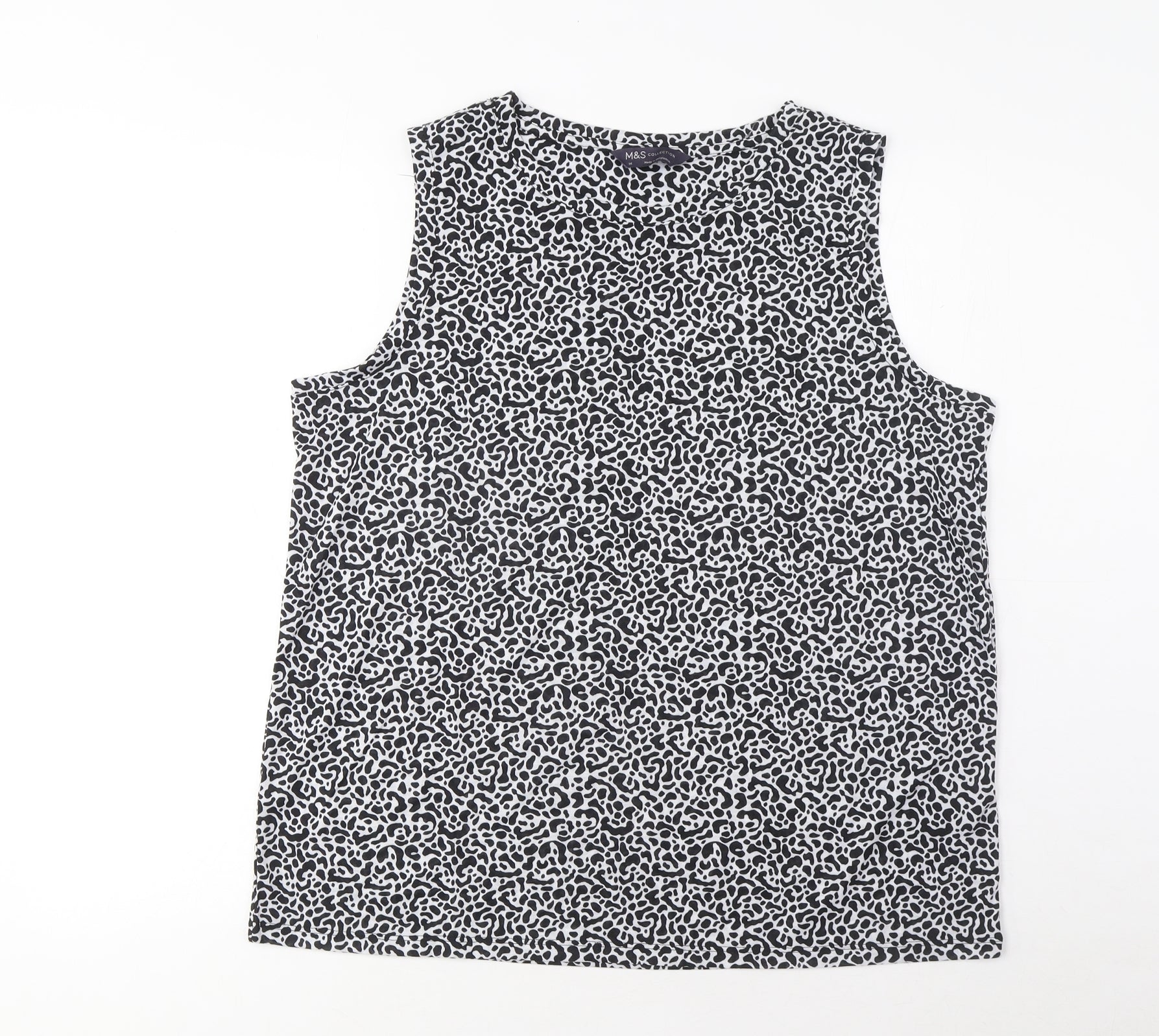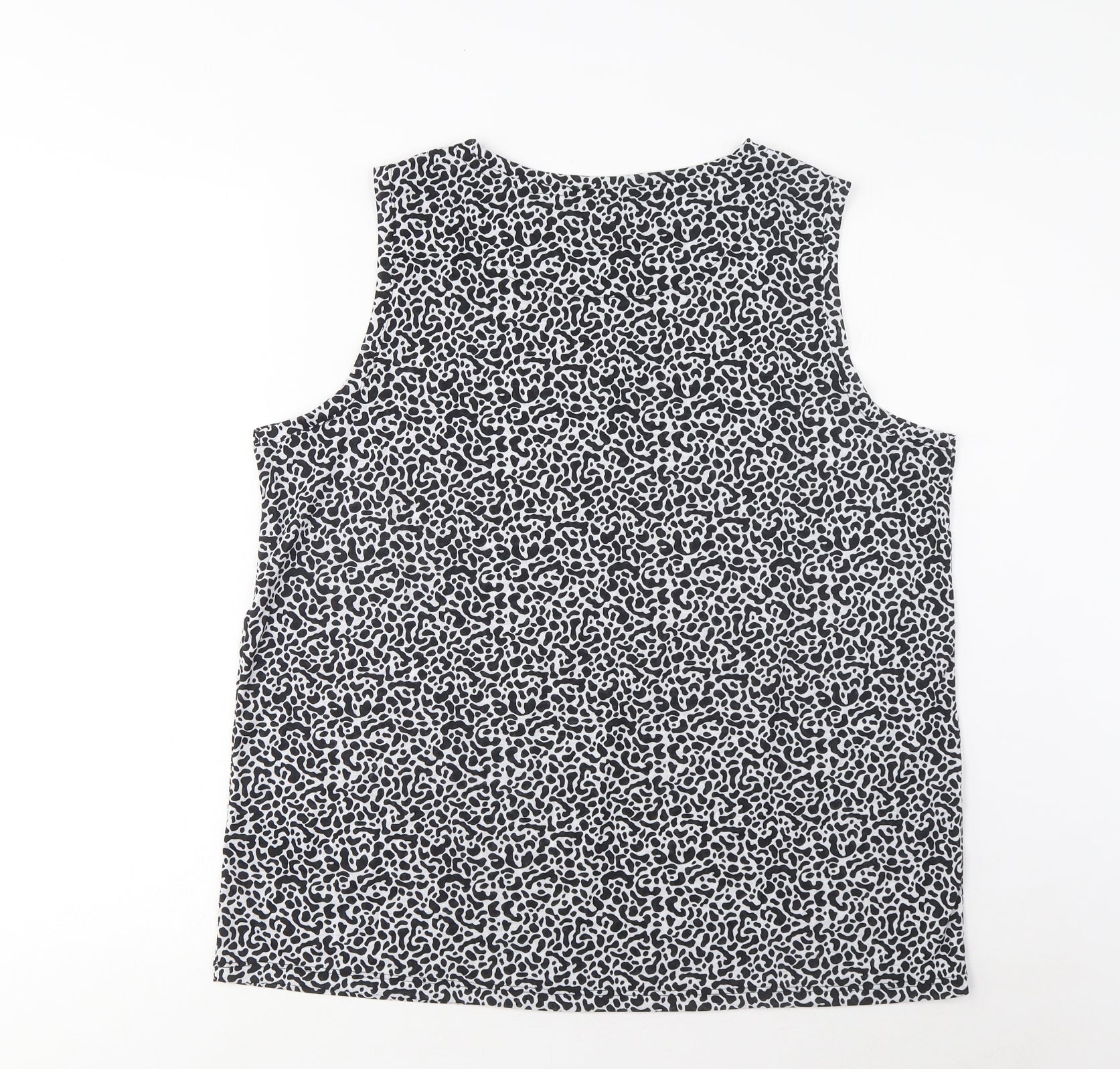 Womens Black Geometric Polyester Basic Tank Size 14 Boat Neck