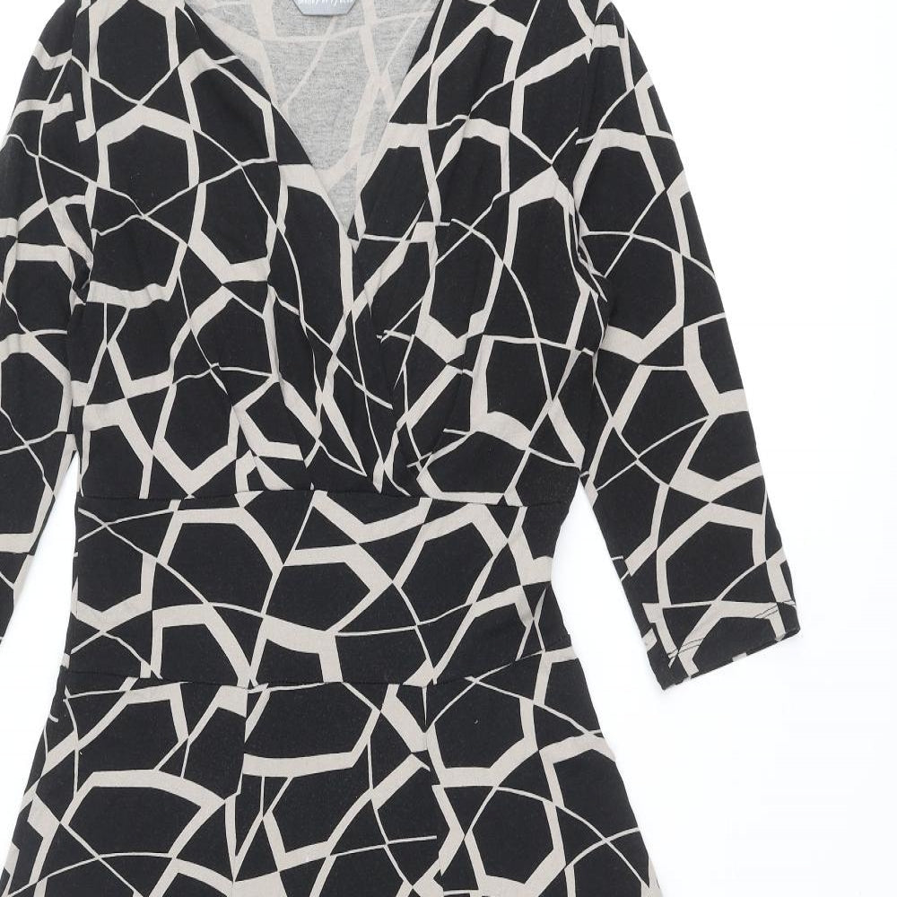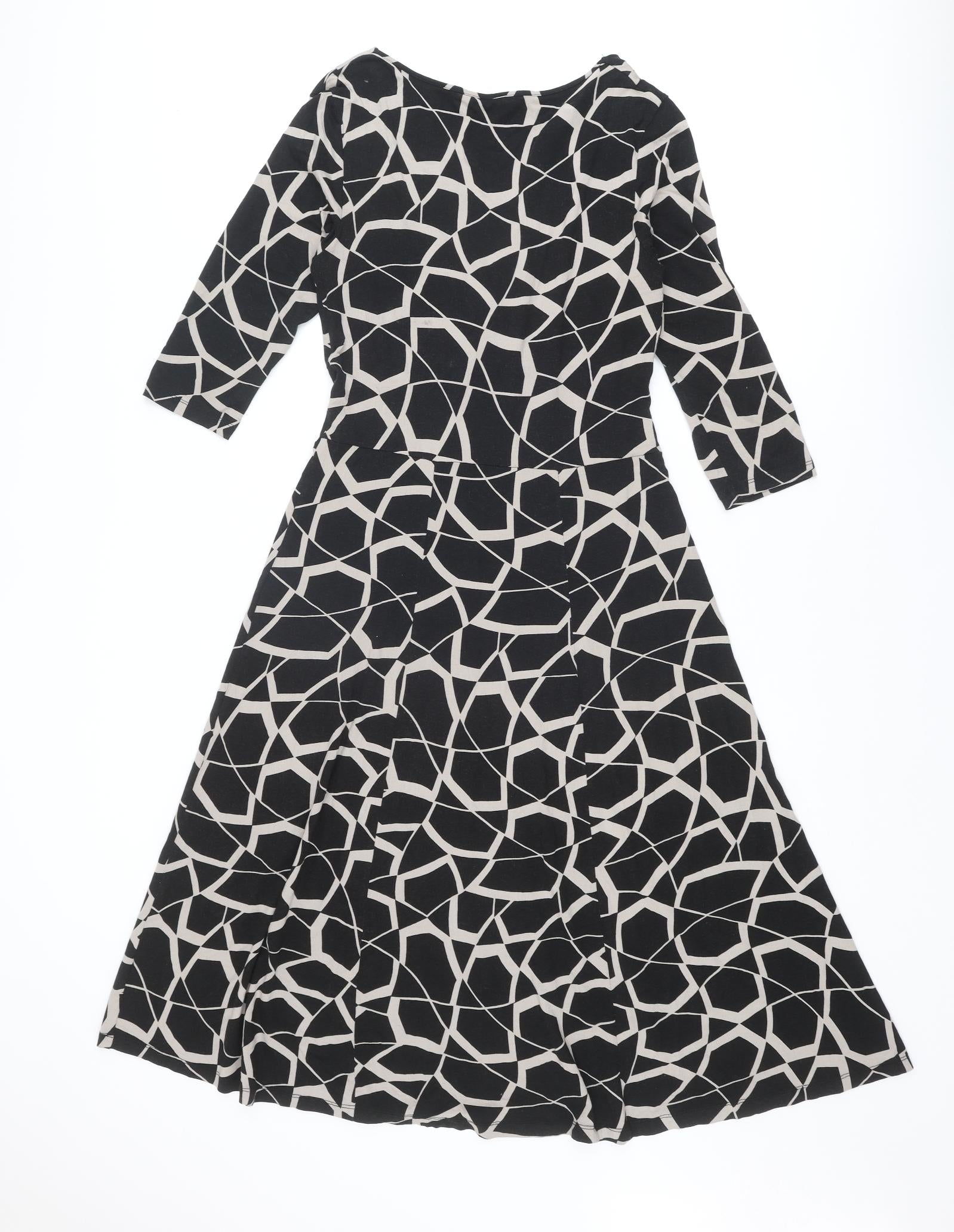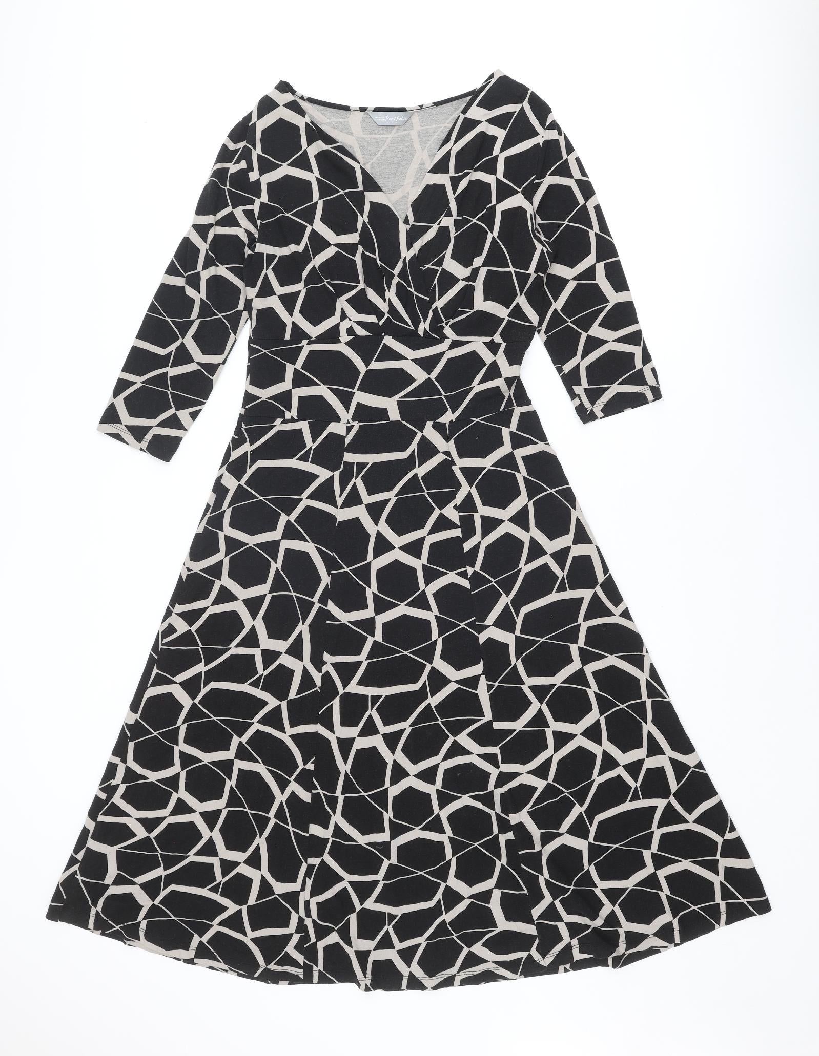 Womens Black Geometric Viscose A-Line Size 10 V-Neck Pullover