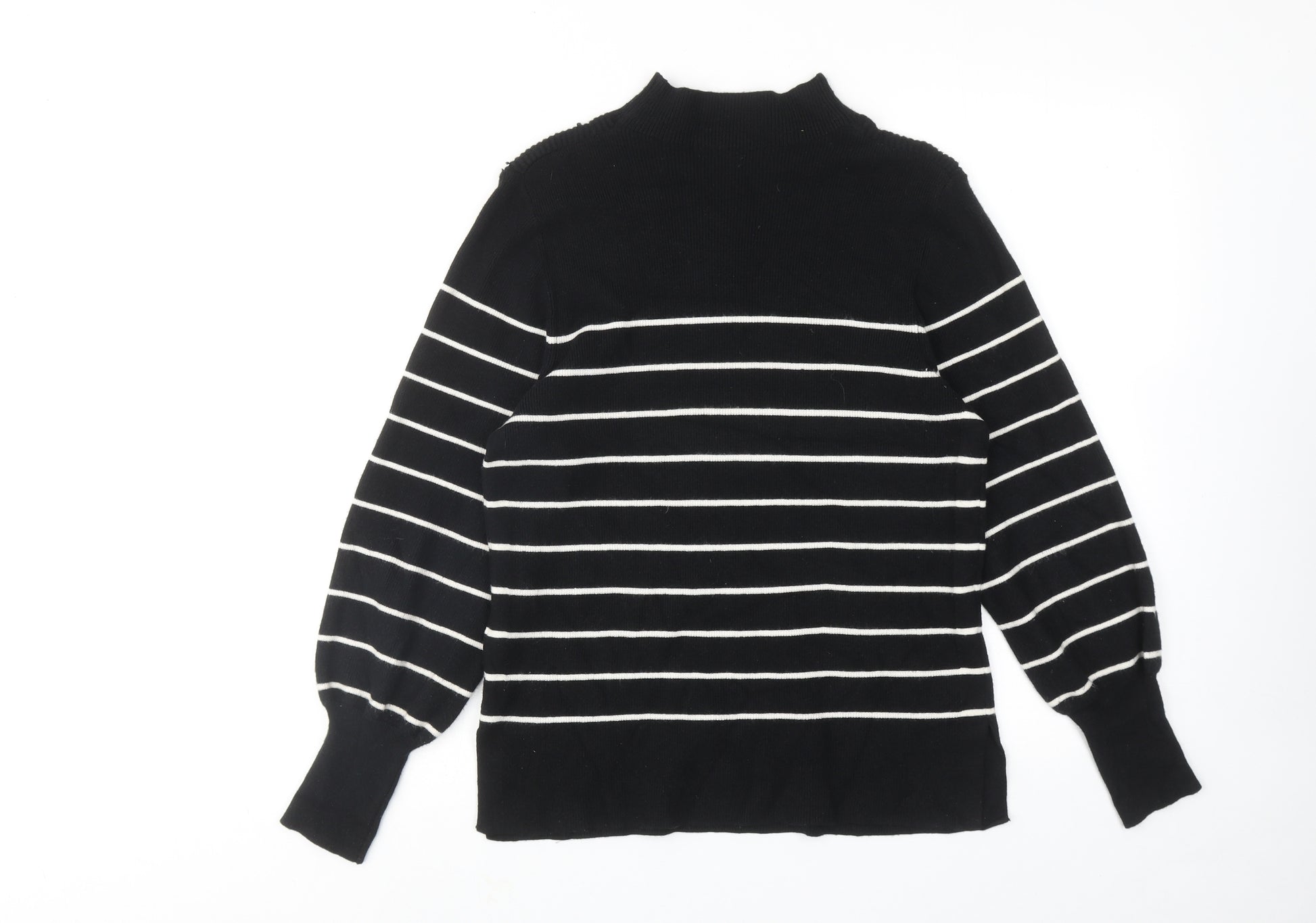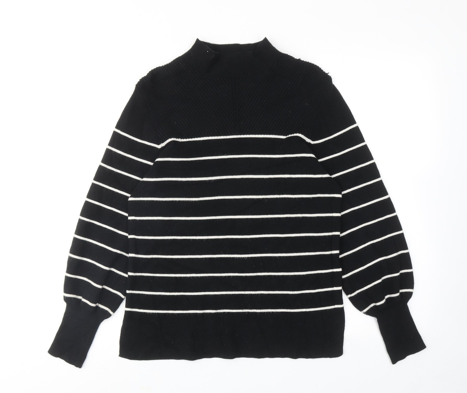 Womens Black High Neck Striped Viscose Pullover Jumper Size M