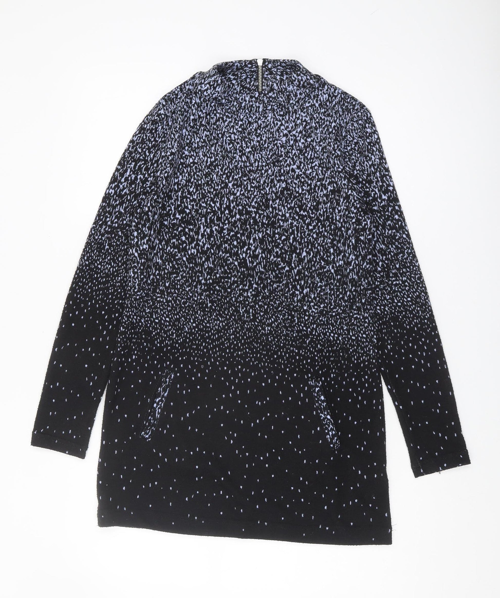Discover the chic elegance of this Marks and Spencer Women’s Jumper in a sophisticated black shade. Crafted from a durable blend of polyester and elastane, this jumper offers both comfort and stretch, ensuring ease of movement for your daily activities. Its high neckline and long sleeves provide an element of warmth, making it suitable for all seasons. Featuring a sleek zip accent on the back, the jumper boasts a unique and trendy design, perfect for casual outings or a relaxed day at home. The heavyweight knit fabric and graphic print add a touch of contemporary style, while its regular fit flatters a variety of body types. This jumper is machine washable, offering convenience and easy care. Elevate your wardrobe with this versatile piece, perfect for pairing with jeans or a stylish skirt. Ideal for the modern woman seeking both style and comfort in one statement piece.