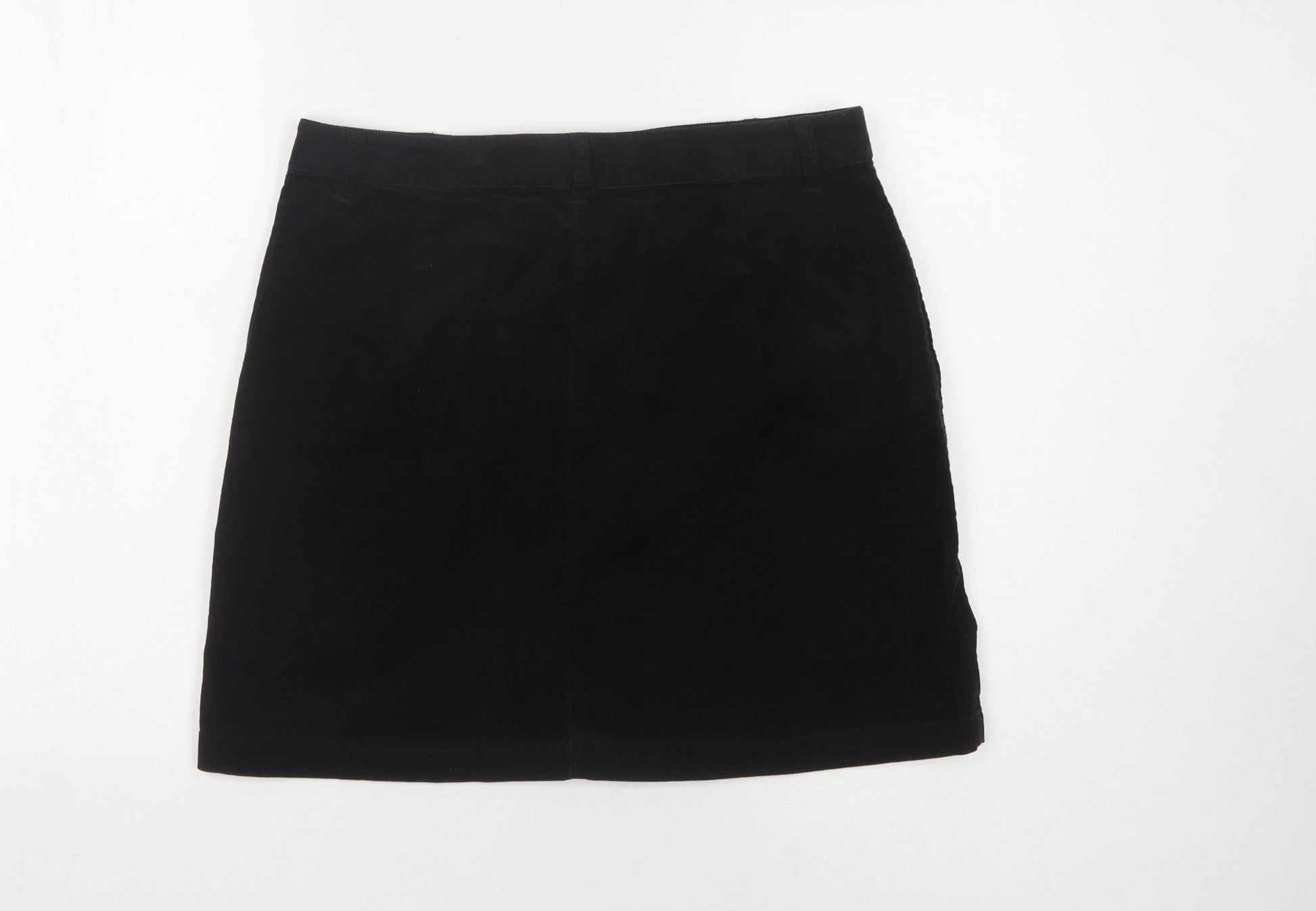 Elevate your wardrobe with this classic knee-length skirt from Marks and Spencer. Perfect for any casual occasion, this skirt offers a sleek and timeless silhouette with its straight and pencil style. Crafted from a comfortable and durable blend of 98% Cotton and 2% Elastane, it ensures a smooth fit and lasting comfort throughout the day. Designed in versatile black, this piece suits any style or season. The button accents and handy pockets add a practical touch while maintaining elegant simplicity. Machine washable for easy care, this skirt is made for effortless styling, making it a must-have addition to every woman's wardrobe. Available in size 12, it caters to a regular fit and features a convenient mid-rise design. Whether you're heading to work or a casual outing, this skirt is sure to become a staple item that you can rely on. Don’t miss out on the chance to embrace sophistication and comfort. Get yours today and stride confidently into any occasion!