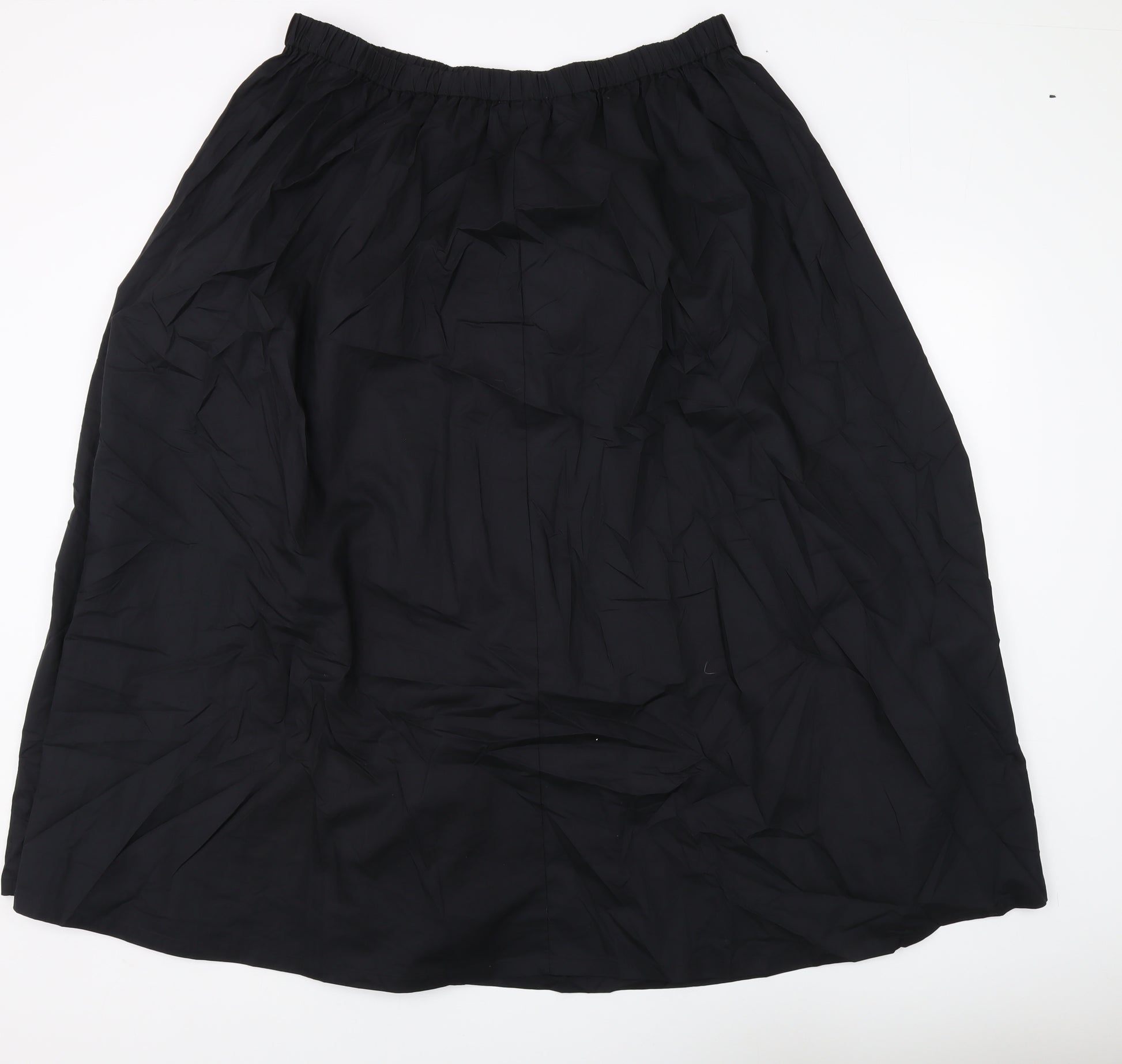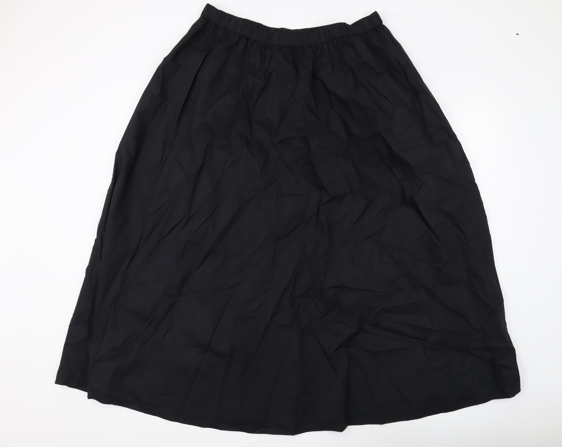 Discover effortless elegance with this black long skirt from Marks and Spencer. Crafted from a 100% cotton fabric, this skirt promises comfort and durability, perfect for everyday wear. Its elastic waist ensures a comfortable fit while maintaining a sleek silhouette. The timeless black hue makes it a versatile addition to any wardrobe, easily pairing with various tops for different occasions. Ideal for casual outings, this skirt offers a simplistic design with no patterns, allowing you to accessorize freely according to your mood and event. Despite slight wrinkling, the skirt remains in excellent condition, ready to enhance your attire with its understated charm. Embrace the comfort and style of Marks and Spencer with this must-have piece.
