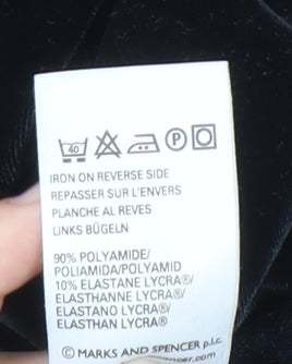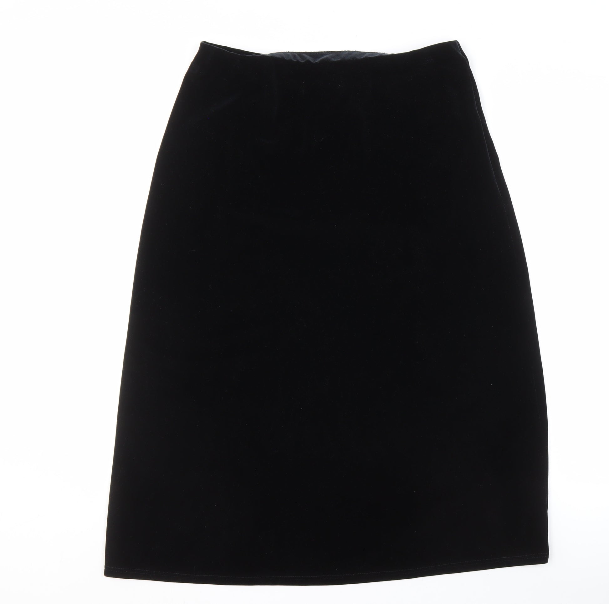Elevate your wardrobe with this elegant black midi skirt from Marks and Spencer. Crafted for women, it features a sophisticated straight and pencil style that makes it perfect for versatile styling options. Made from a luxurious blend of polyamide and elastane, this velvet skirt boasts a chic and smooth appearance while offering a comfortable fit. Available in size 14, its classic black hue ensures it will become a staple piece in your collection. Ideal for both casual and business environments, the skirt’s machine-washable fabric allows for easy maintenance. Despite its pre-owned status, the skirt is in excellent condition, free from visible defects, offering both style and quality at an accessible price. This Marks and Spencer skirt is sure to add a touch of class to your attire, making it an ideal choice for any fashion-conscious individual.