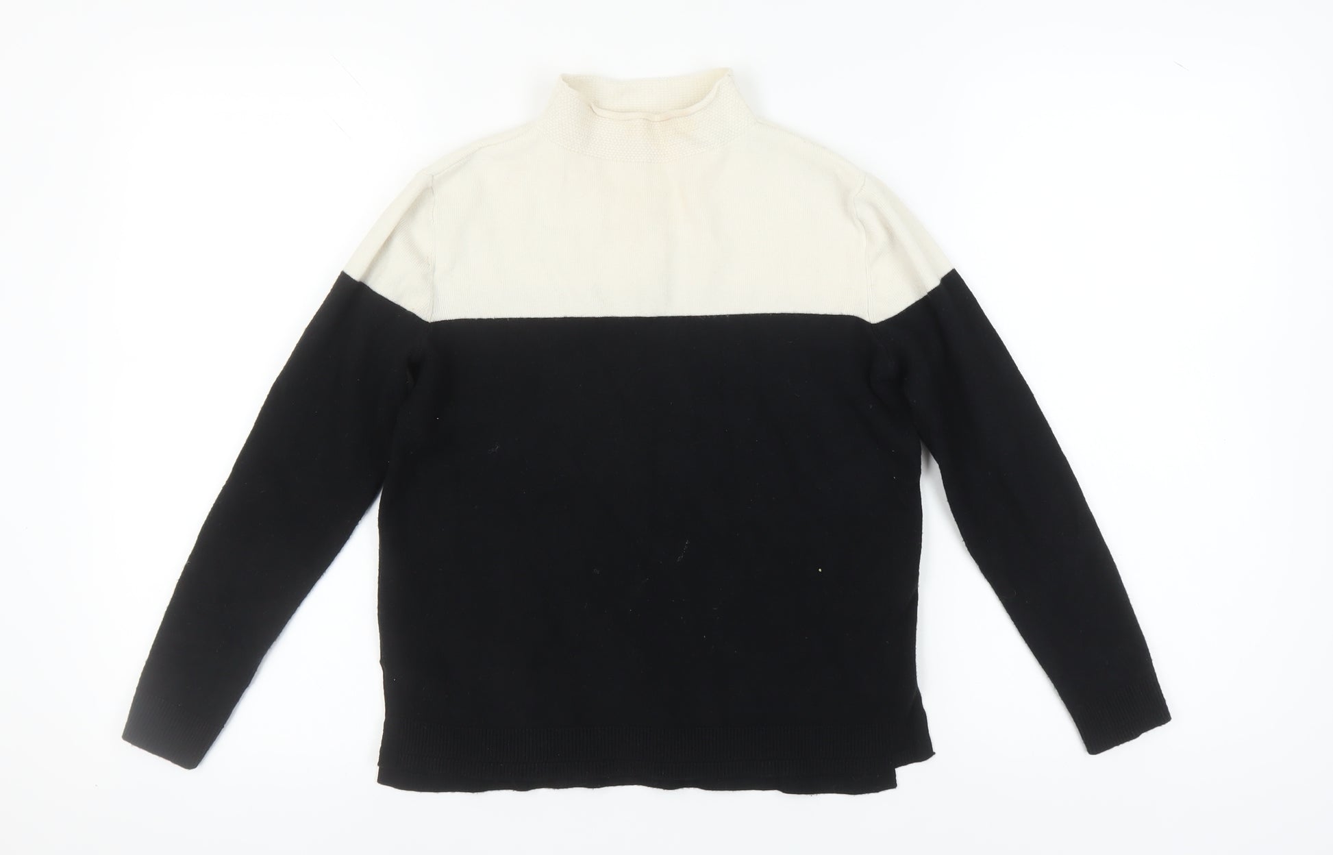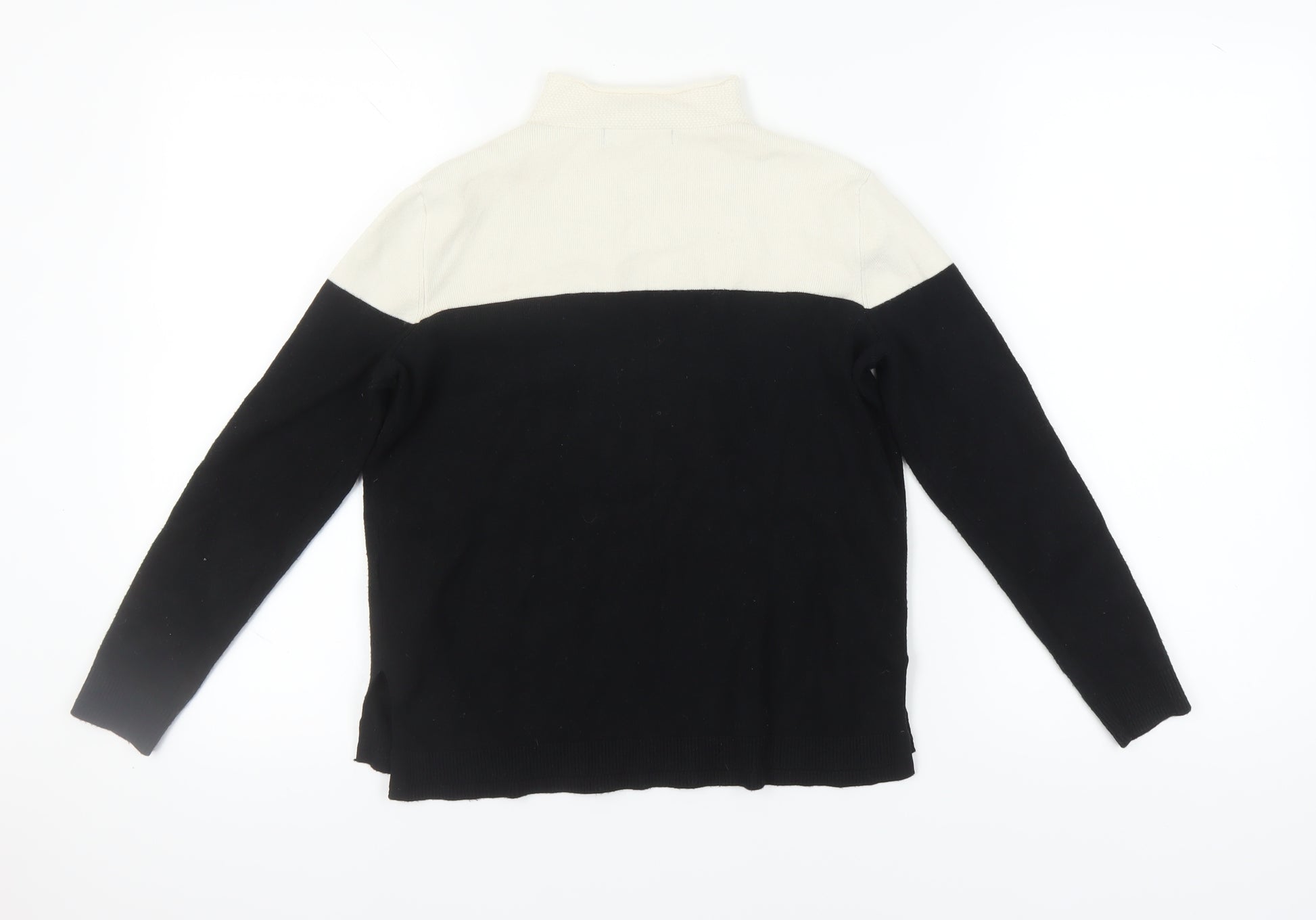 Experience comfort and style with this elegant Marks and Spencer Women's Pullover Jumper in size 10. Designed for the modern woman, this black and ivory jumper features a chic mock neck, adding a touch of sophistication to your wardrobe. Crafted from a luxurious blend of viscose, polyester, and polyamide, this jumper offers both warmth and breathability, making it ideal for any occasion. The long sleeves and classic pullover style ensure you stay cosy and stylish, while the machine washable fabric allows for easy maintenance. Whether pairing with your favourite jeans for a casual day out or layering over a shirt for a more formal look, this jumper provides versatility and elegance. Perfect for dressing up or down, it's a wonderful addition to any fashion-forward wardrobe.