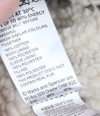 Discover a stylish and functional addition to your wardrobe with this Marks and Spencer women's motorcycle jacket. Crafted from black cotton, this mid-length jacket boasts a sleek design that effortlessly combines fashion and practicality. Perfectly suited for casual autumn and winter wear, its polyester lining ensures comfort and warmth. The full zip closure and numerous zipped pockets add functionality and a modern edge to your outfit. Ideal for those seeking a versatile piece that complements various styles, this jacket features a regular fit that enhances a classic silhouette. Its machine washable care instructions make it a low-maintenance choice. Despite being gently used, it remains in excellent condition, offering a chic and sophisticated touch to any wardrobe collection. Embrace the timeless appeal of this motorcycle jacket, designed to elevate your casual looks with ease and elegance. Don't miss out on the opportunity to own this wardrobe staple that provides both warmth and style.