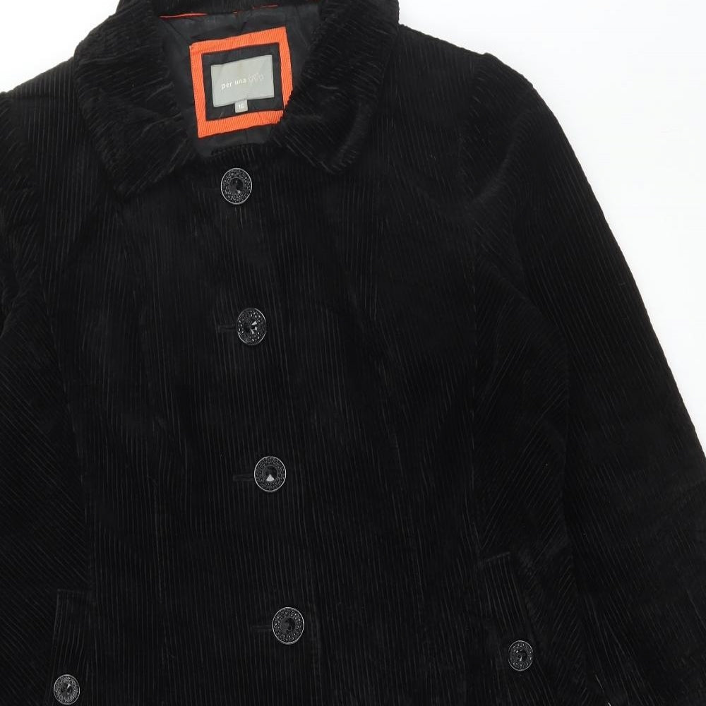 Wallis Women’s Black Long Pea Coat UK 16 Lined Button Classic Style