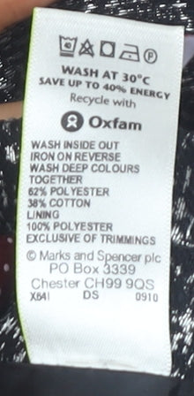 Enhance your wardrobe with this elegant Marks and Spencer Women's Black Pencil Skirt in Size 12, perfect for both business and casual occasions. This knee-length skirt is crafted with a sophisticated black design that complements various tops and jackets. Its straight and pencil style gives a classic look, ideal for a professional setting or a refined casual outing. Made from a blend of 62% polyester and 38% cotton, this skirt offers both comfort and durability, while being lightweight and suitable for all seasons. It includes a zip closure for easy wearing and is machine washable for effortless care. The skirt features a mid-rise fit, promising a comfortable and flattering silhouette. With no visible defects, this piece is in excellent condition, ready to add a touch of class to your daily attire. Don't miss this versatile piece to elevate your fashion collection and enjoy the timeless quality Marks and Spencer is renowned for.