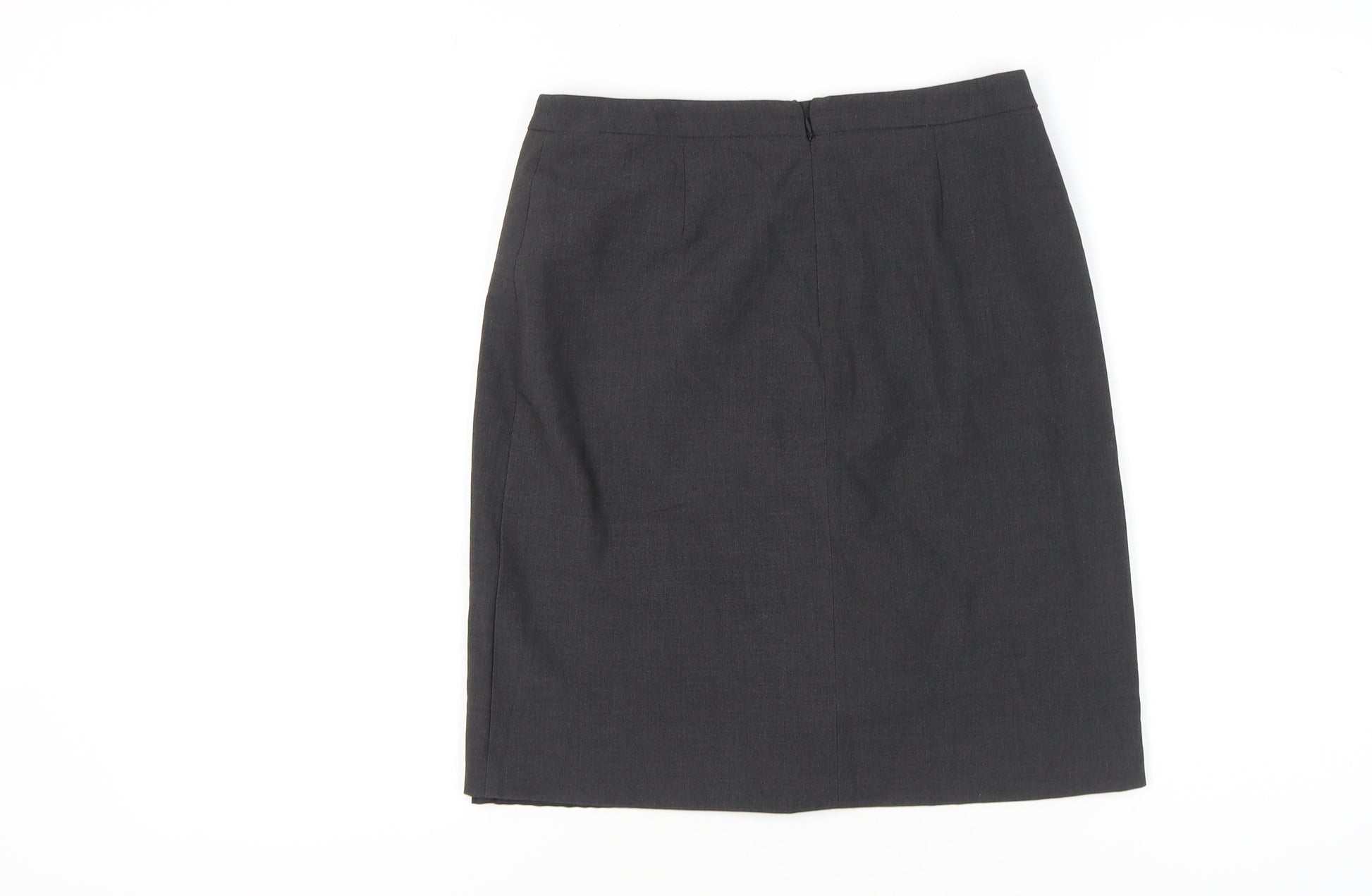 Elevate your professional wardrobe with this sophisticated Marks and Spencer pencil skirt, perfect for business settings and workwear. Crafted in a classic knee-length design, this elegant skirt features a sleek black colour and a straight, pencil silhouette that seamlessly flatters every figure. Constructed from a comfortable blend of polyester, viscose, and elastane, the fabric provides just the right amount of stretch for a comfortable, all-day fit. The skirt fastens securely with a discreet zip closure, ensuring a streamlined look. Ideal for any season, the skirt's versatility makes it a valuable addition to your wardrobe, suitable for pairing with a variety of tops and blouses. Presented in a size UK 10, this piece offers a regular fit tailored to enhance the professional appeal of any outfit. Machine washable for easy care, it maintains its pristine condition and appearance with minimal effort. With its timeless appeal, this skirt is a must-have for any stylish professional looking to make a polished statement in the office or any business environment. Don't miss out on the opportunity to own this versatile, high-quality piece from Marks and Spencer.