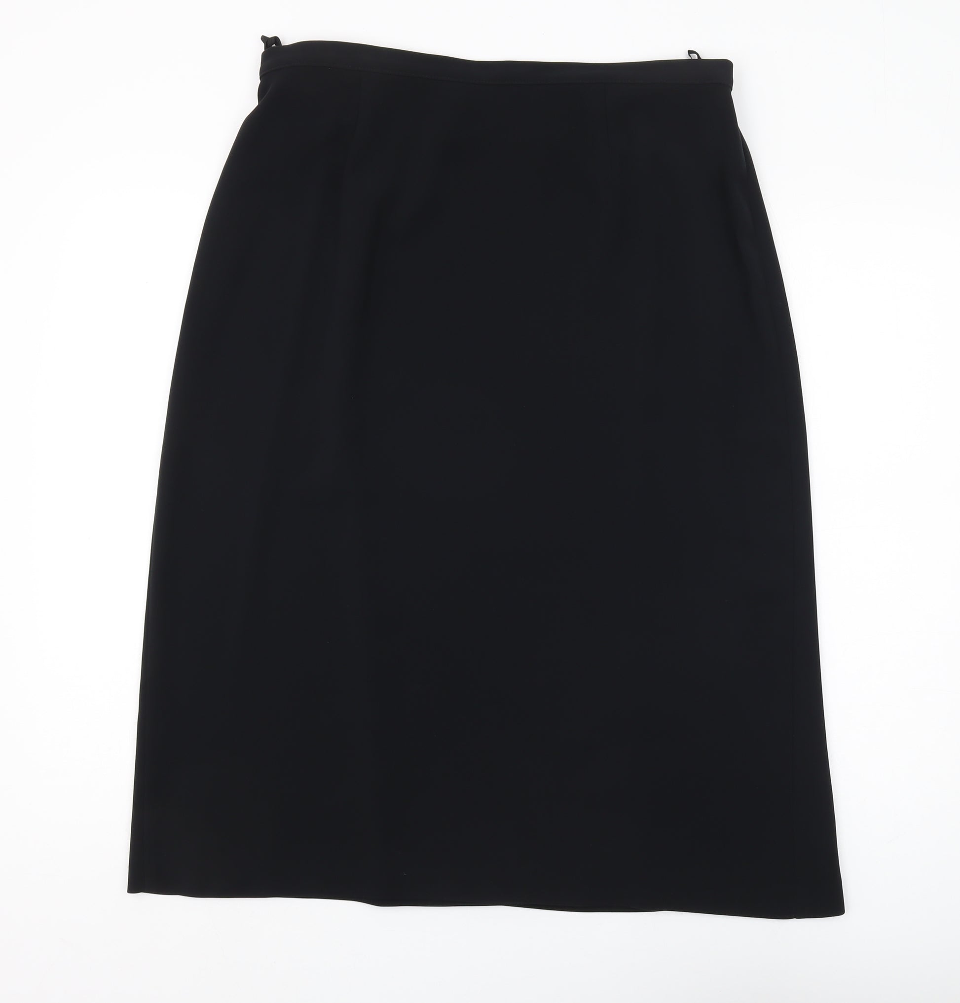 Elevate your professional wardrobe with this elegant black pencil skirt from Marks and Spencer. Designed for the modern woman, this skirt offers a sleek and classic silhouette that is perfect for business environments or any formal occasion. Crafted from high-quality polyester, it ensures a comfortable fit while maintaining its form throughout the day. The knee-length cut provides a sophisticated look, making it easy to pair with blouses or blazers for a complete ensemble. Featuring a reliable zip closure, this skirt offers convenience and a secure fit. Easy to care for, it is machine washable, perfect for the busy lifestyle. Offered in size 18, it's tailored to provide a flattering fit that accentuates your natural shape. Its versatile black hue makes it a timeless addition to any wardrobe. Invest in this Marks and Spencer skirt to add a staple piece that can transition effortlessly from the office to events. Perfect for all-season wear, its excellent condition guarantees you receive a garment ready to impress, with no visible signs of wear.