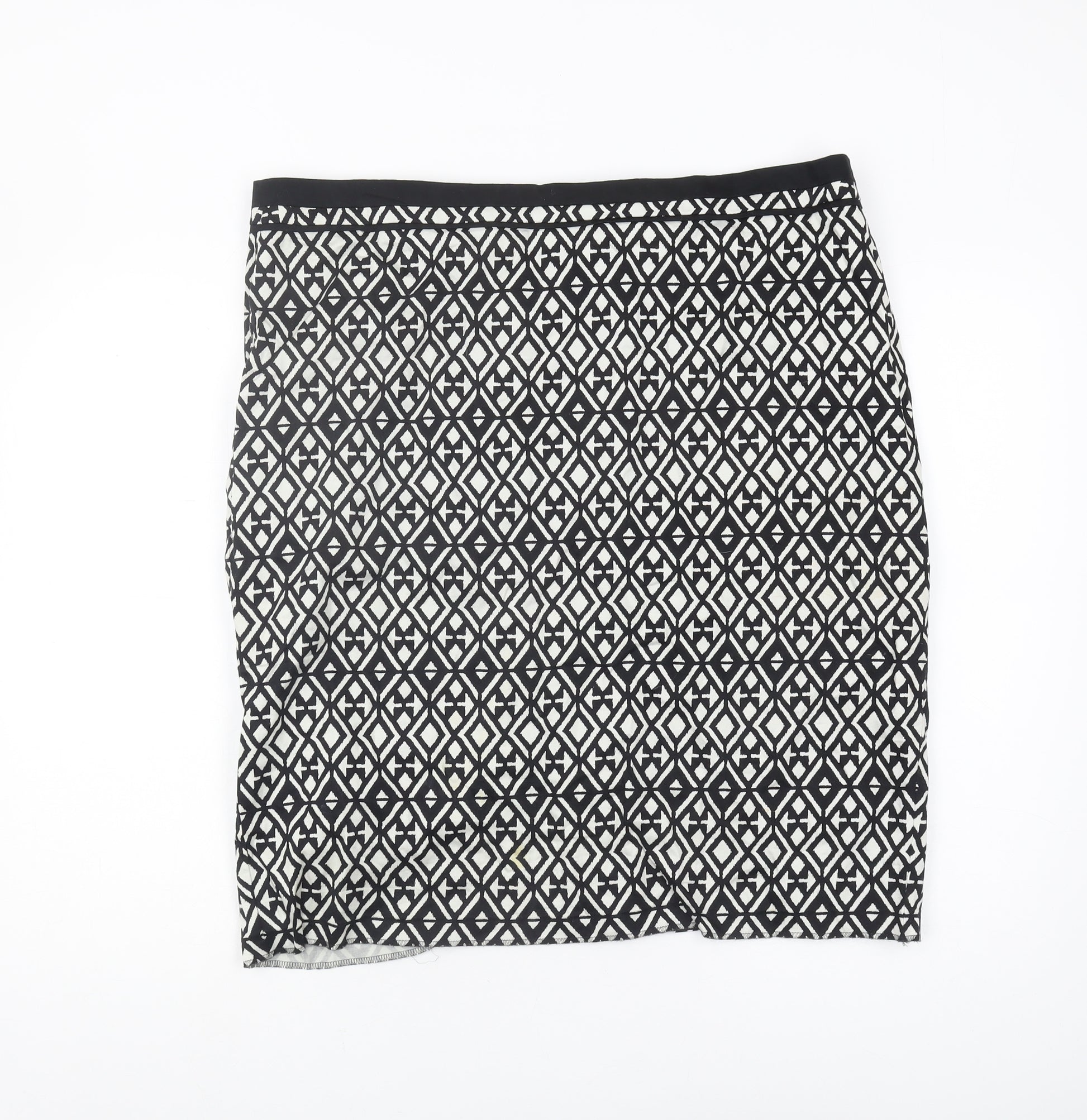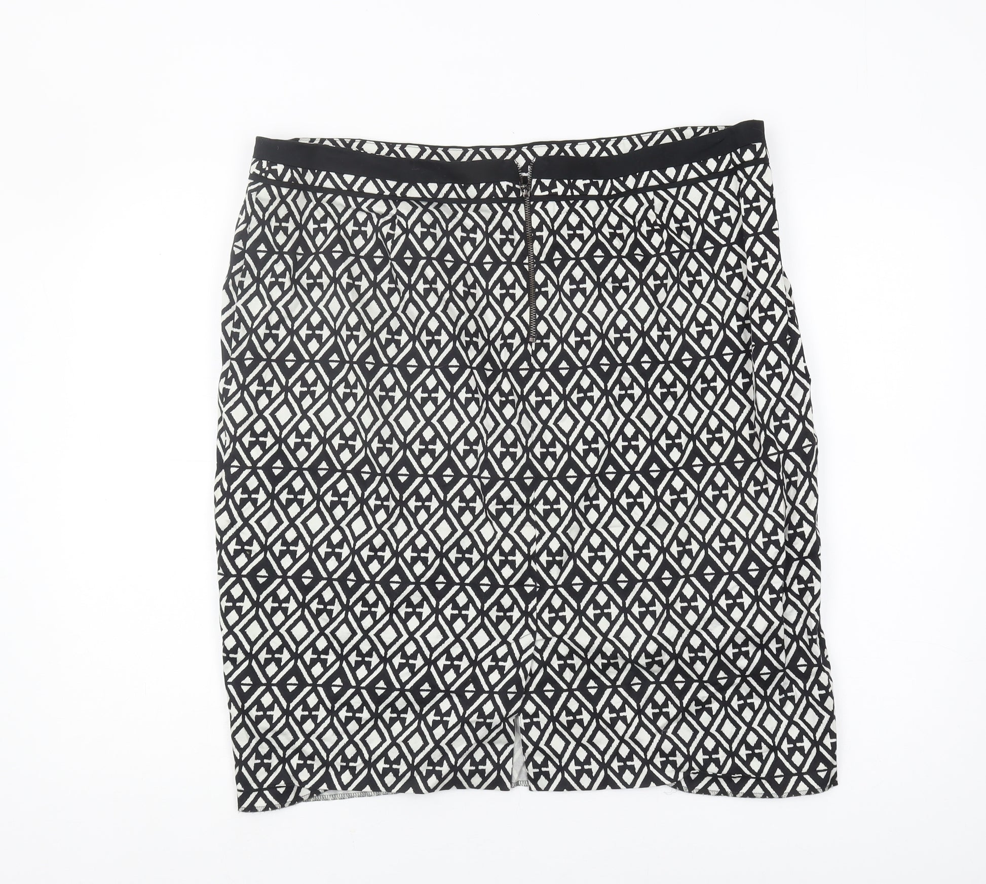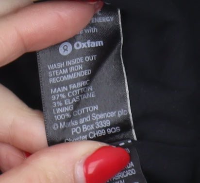 Elevate your wardrobe with this versatile Marks and Spencer pencil skirt, a must-have staple for any sophisticated woman's collection. Designed for both professional settings and evening occasions, this black skirt features a striking geometric pattern that adds a touch of modern elegance. Crafted from a high-quality blend of 97% Cotton and 3% Elastane, the skirt ensures a comfortable stretch fit, complemented by a secure zip closure at the back. The fabric's technical build promises durability and ease of movement, making it perfect for long hours at the office or a sleek evening look. This skirt, tailored specifically for women, is designed in a straight and pencil style, ideal for highlighting your curves while providing a classic silhouette. With a UK size 18 regular fit, it caters to a wide range of body types, ensuring every wearer can enjoy its refined style. Its understated black hue makes it effortlessly adaptable, allowing it to pair easily with your favourite blouses and blazers. Whether you're attending work meetings or heading out for a cocktail party, this versatile piece can be your go-to option for repeatedly looking polished and stylish. Invest in this Marks and Spencer skirt today to enhance your wardrobe with a timeless piece that's as fashionable as it is functional.
