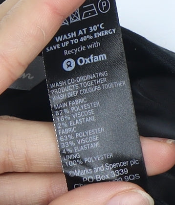 Discover sleek elegance with this Marks and Spencer Women's Black Pencil Skirt, perfect for both business and casual occasions. Crafted with a mid-rise design to flatter your silhouette, this skirt features a stylish geometric pattern in classic black, making it a versatile addition to your wardrobe. The high-quality blend of polyester, viscose, and elastane ensures both comfort and durability, while the zip closure offers a secure fit. Ideal for the autumn and winter seasons, its machine washable material allows for easy care. Whether you're at the office or heading out for a casual outing, this skirt pairs well with a variety of tops and shoes. A great choice for those seeking a professional, yet fashionable look without compromising on comfort. A gently used item in excellent condition, it shows no visible signs of wear, promising a long-lasting staple for your collection.