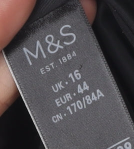 Elevate your wardrobe with this elegant Marks and Spencer black pencil skirt, perfect for both professional and formal occasions. Crafted from a blend of polyester, viscose, and elastane, the skirt offers durability and a slight stretch for maximum comfort. Its classic straight and pencil style accentuates your silhouette, making it a versatile addition to your collection. Designed for the modern woman, this skirt is crafted for regular size 16 and features a stunning black hue that pairs effortlessly with a variety of tops and footwear. The machine washable fabric ensures easy maintenance, while the thoughtful design is suitable for autumn, spring, and winter seasons. Whether you're headed to the office or a formal event, this sophisticated skirt is sure to make a statement. With its brand-new condition, it's ready to become a staple in your wardrobe. The timeless design and impeccable craftsmanship from Marks and Spencer guarantee that you'll enjoy wearing this piece for years to come. Don't miss out on this chance to own a versatile and fashionable skirt at an affordable price.