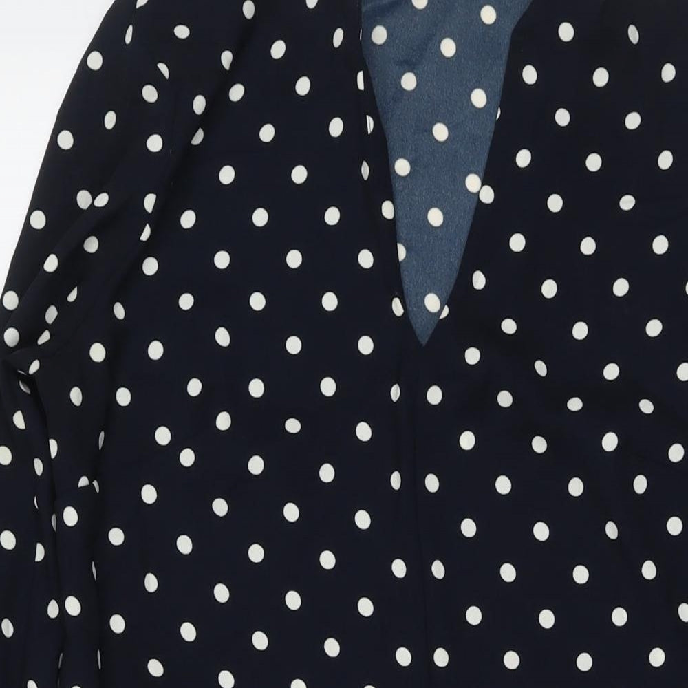 Womens Black Polka Dot Polyester A-Line Size 12 V-Neck Pullover