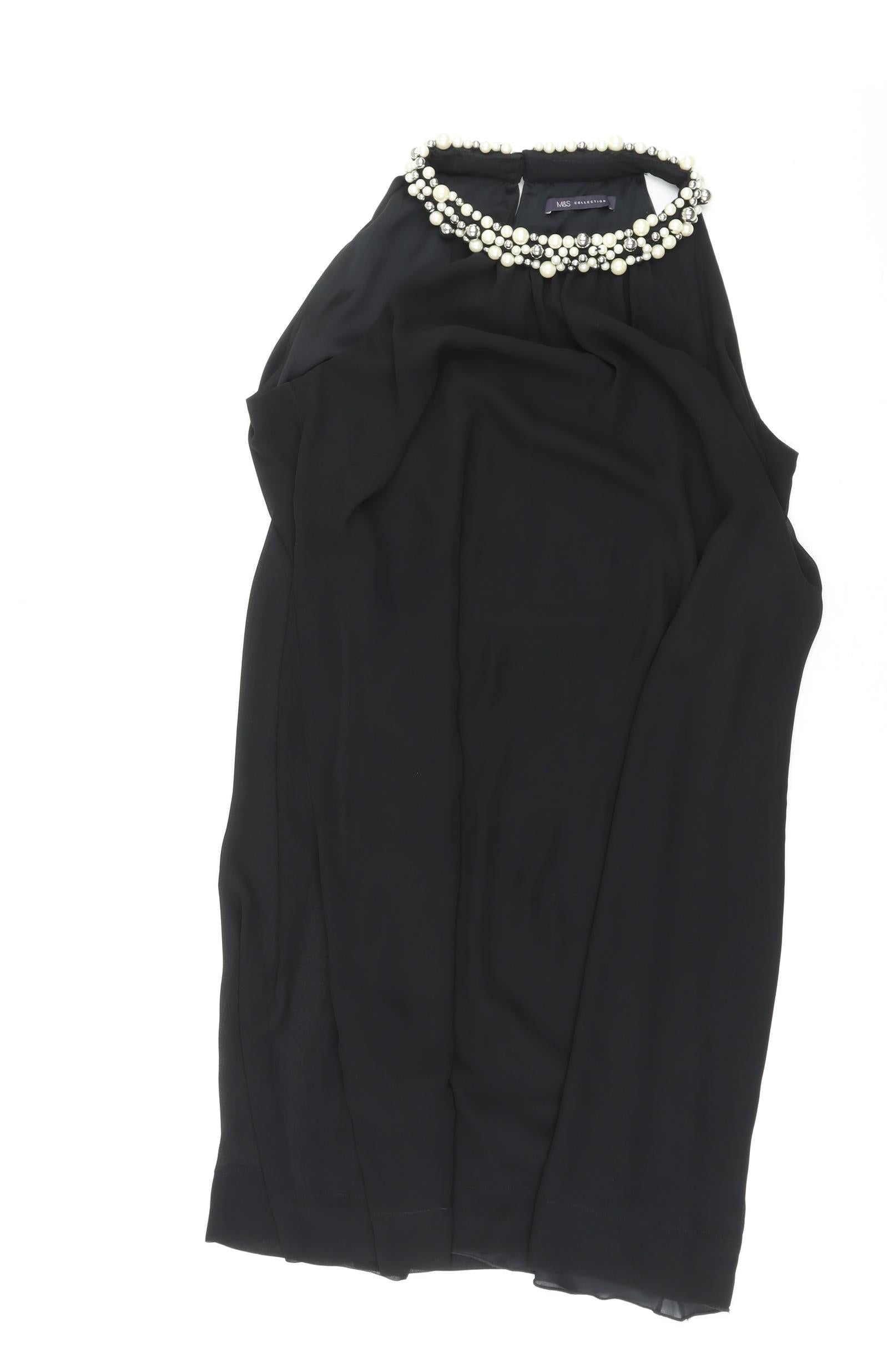 Womens Black Polyester A-Line Size 16 Round Neck Button