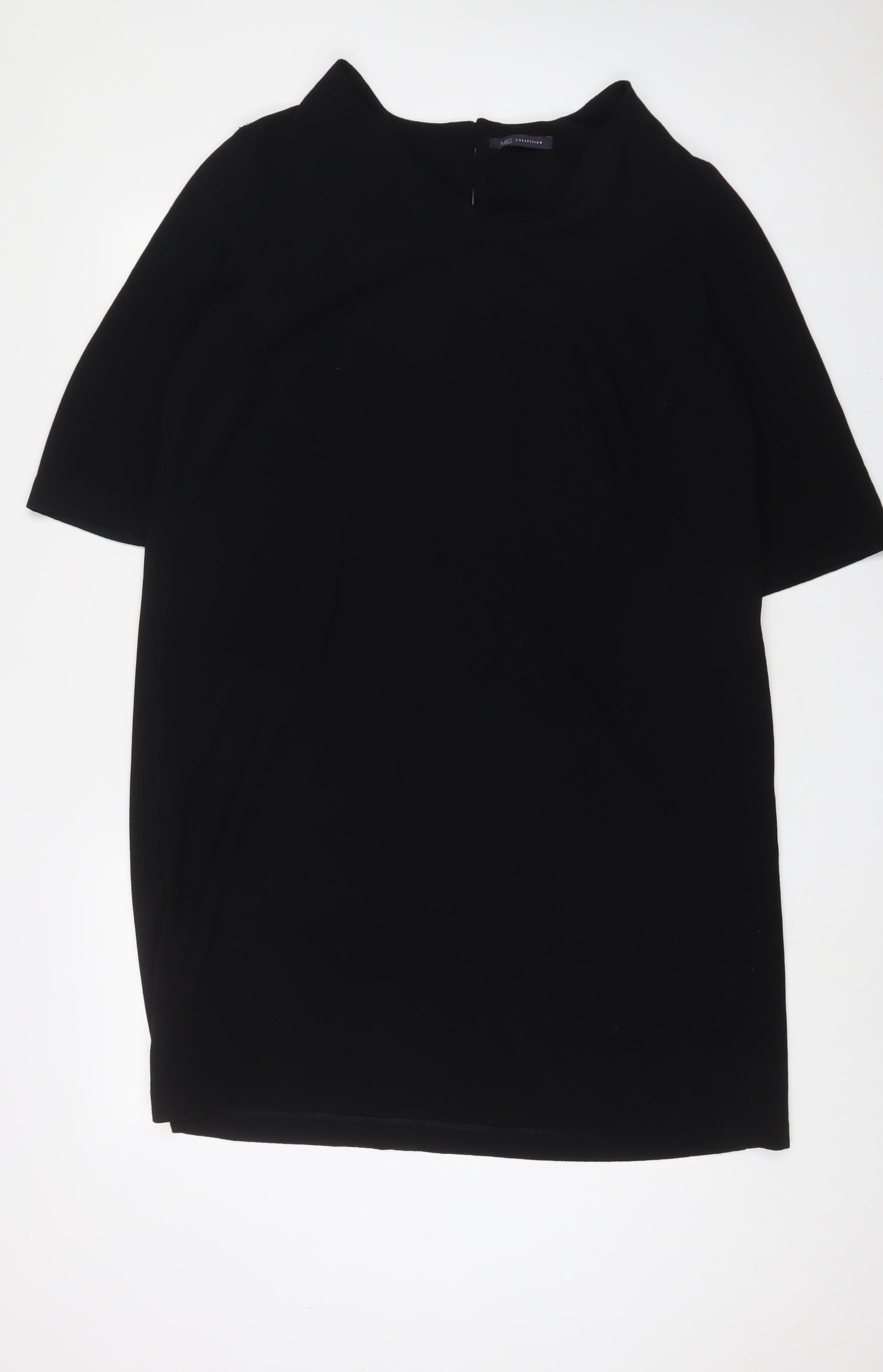 Womens Black Polyester A-Line Size 18 V-Neck Zip