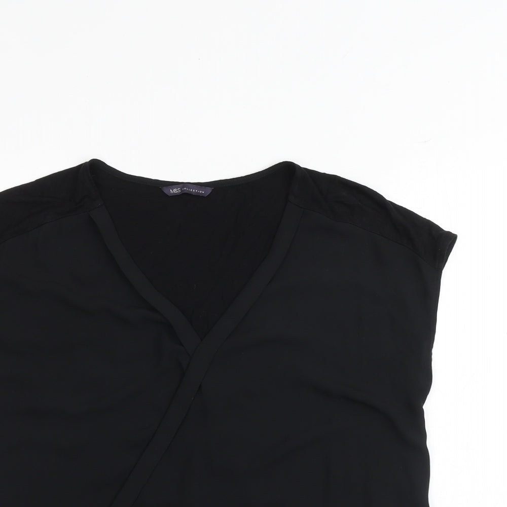 Womens Black Polyester Basic Blouse Size 10 V-Neck