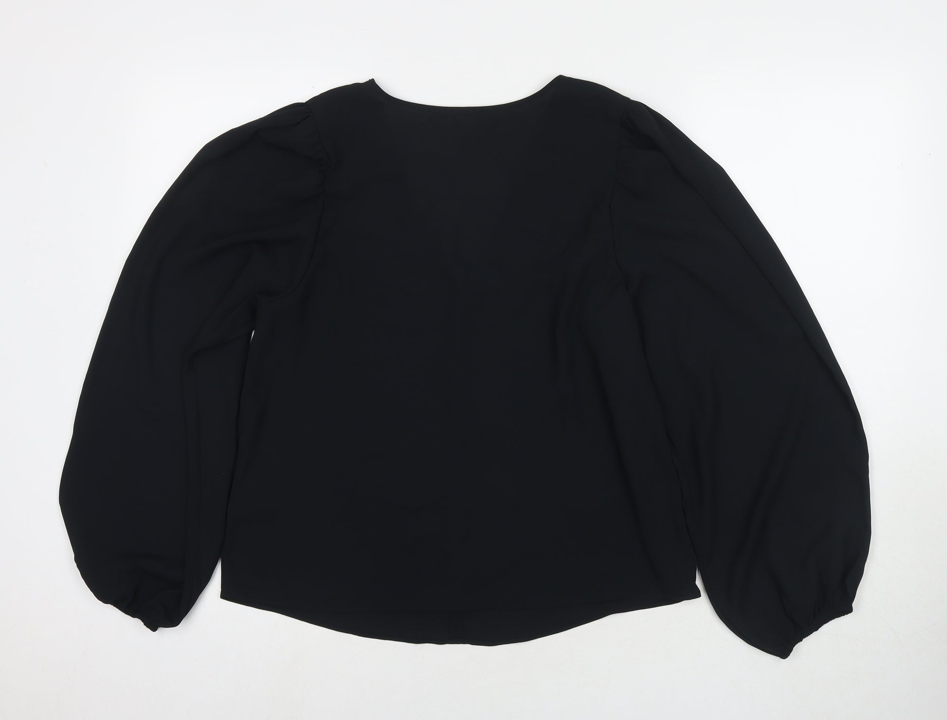 Womens Black Polyester Basic Blouse Size 12 V-Neck