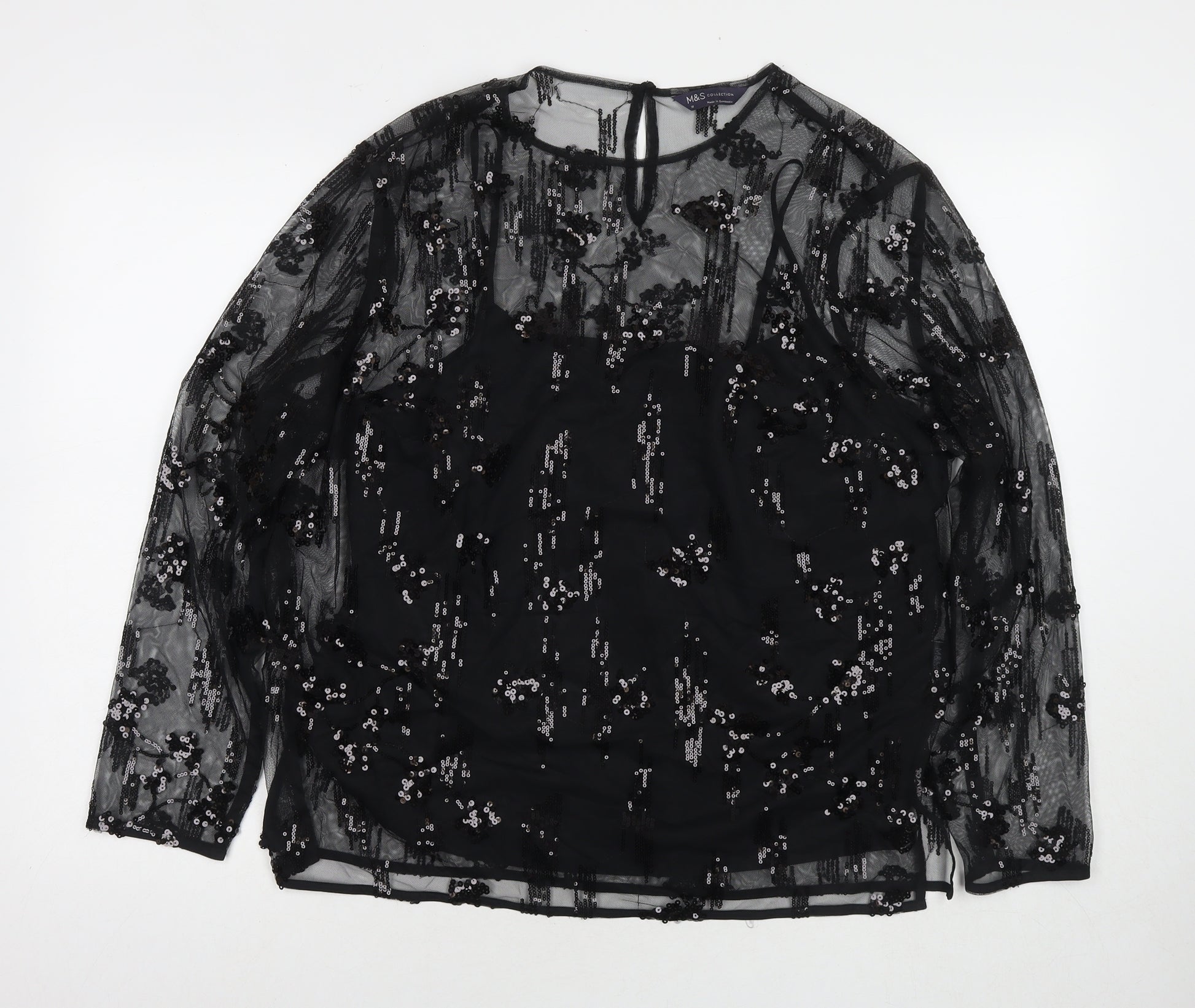 Womens Black Polyester Basic Blouse Size 18 Round Neck - Sequin Detail