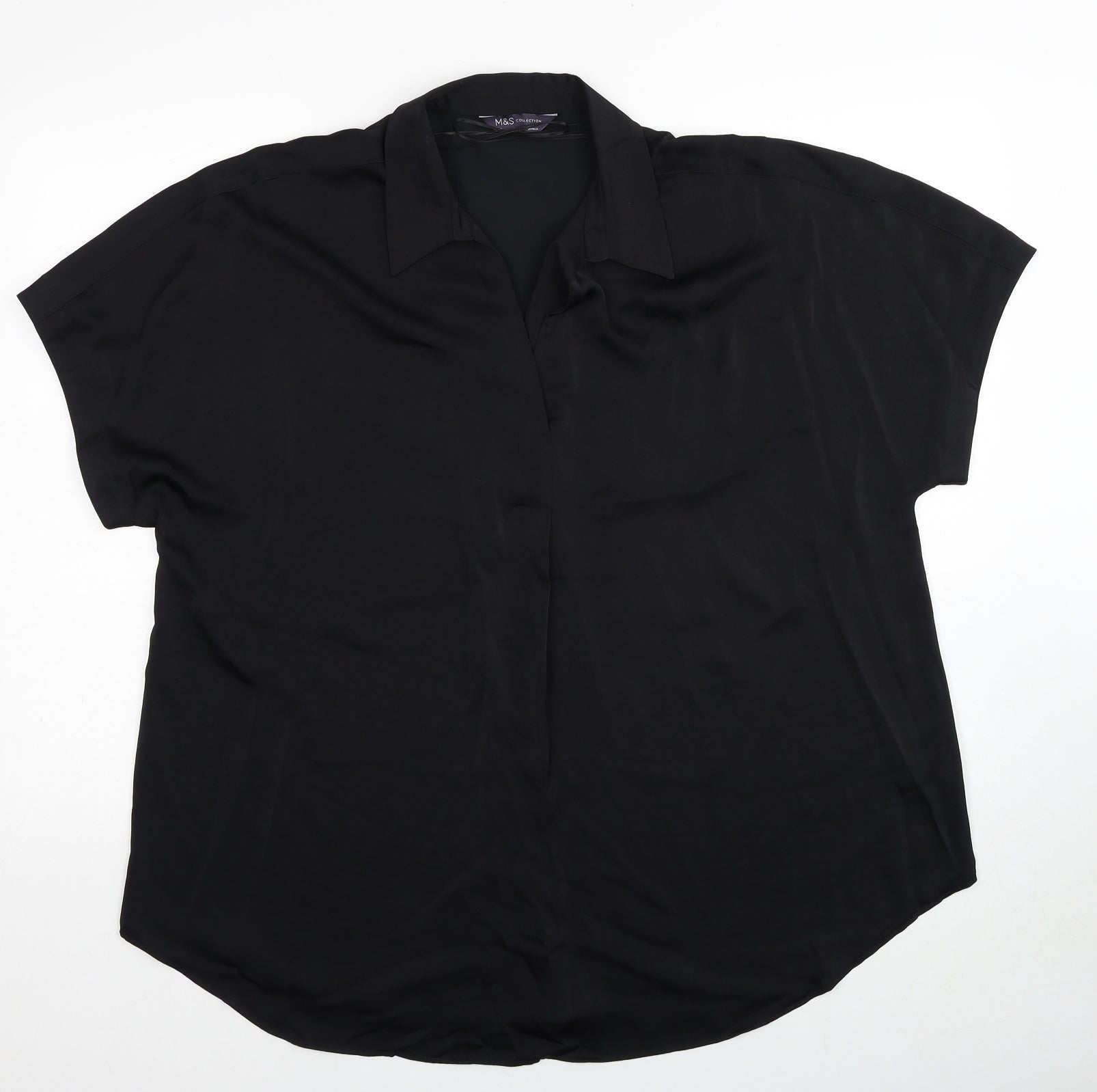 Womens Black Polyester Basic Blouse Size 18 V-Neck