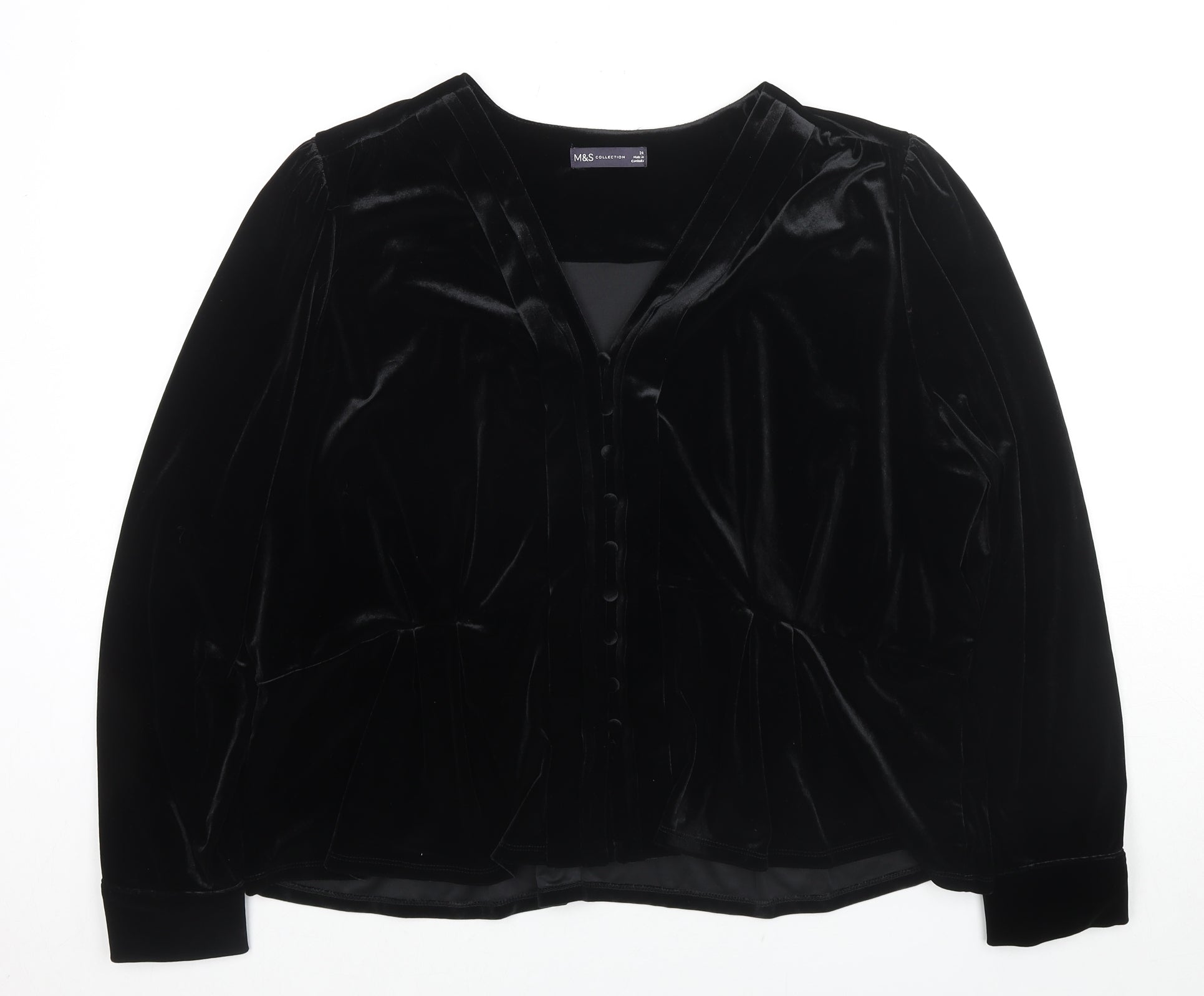 Womens Black Polyester Basic Button-Up Size 24 V-Neck