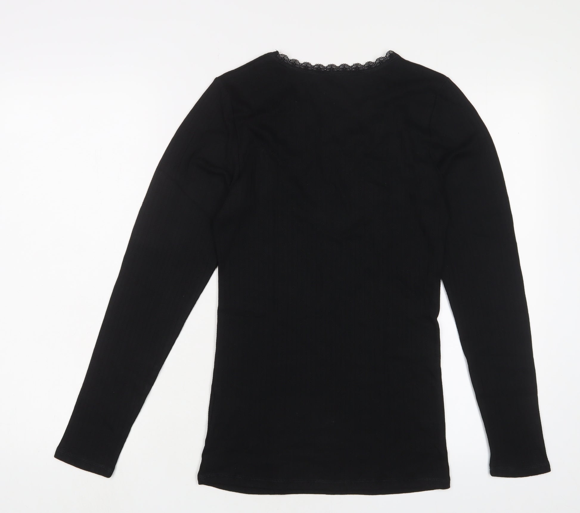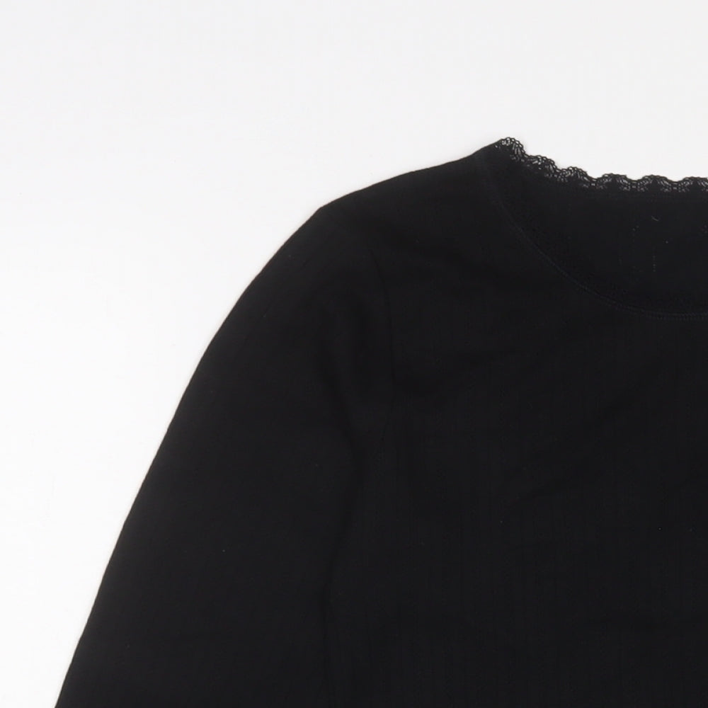 Womens Black Polyester Basic T-Shirt Size 12 Crew Neck - Thermal