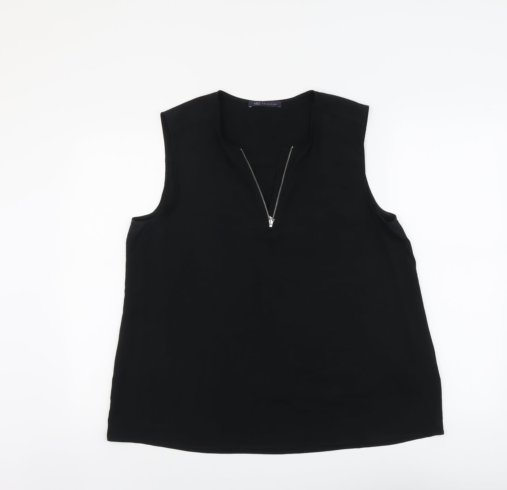 Womens Black Polyester Basic Tank Size 14 V-Neck